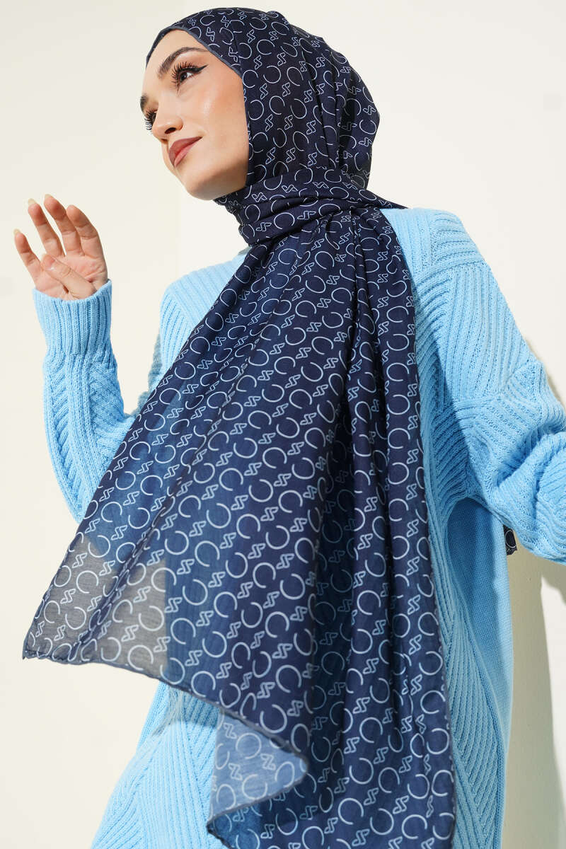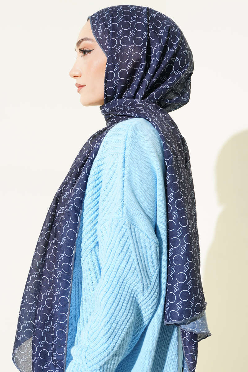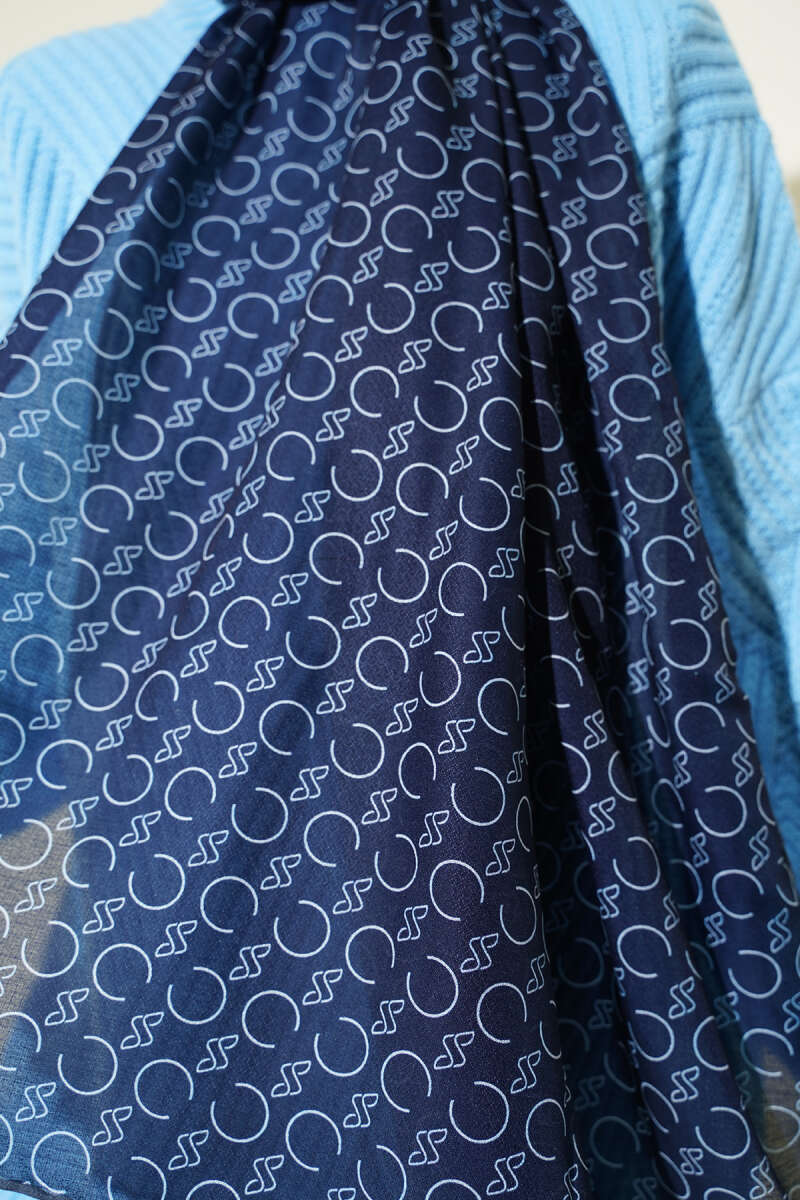 Desenli Ribanalı Demore Şal Lacivert Füme