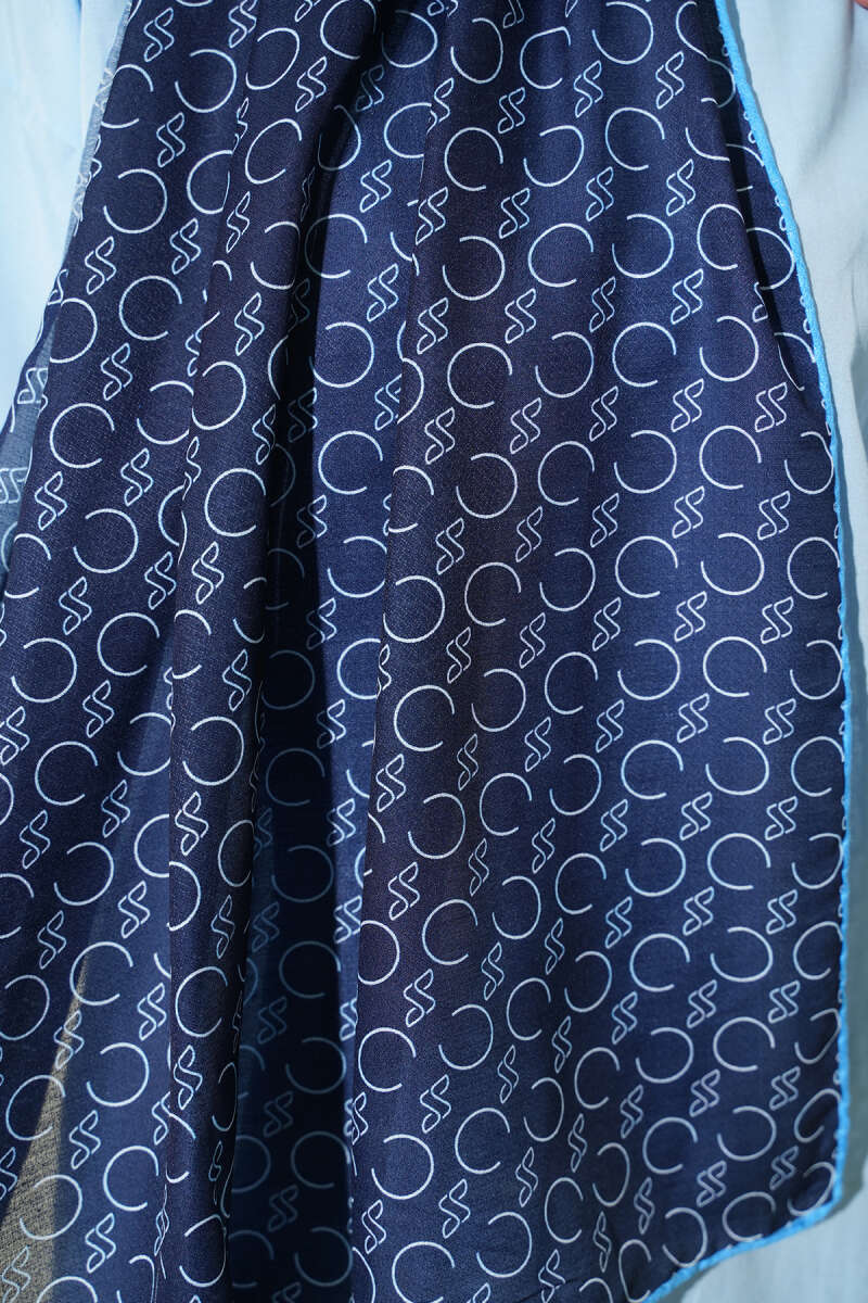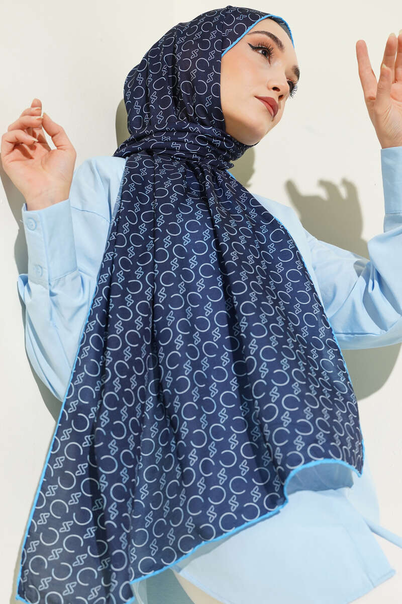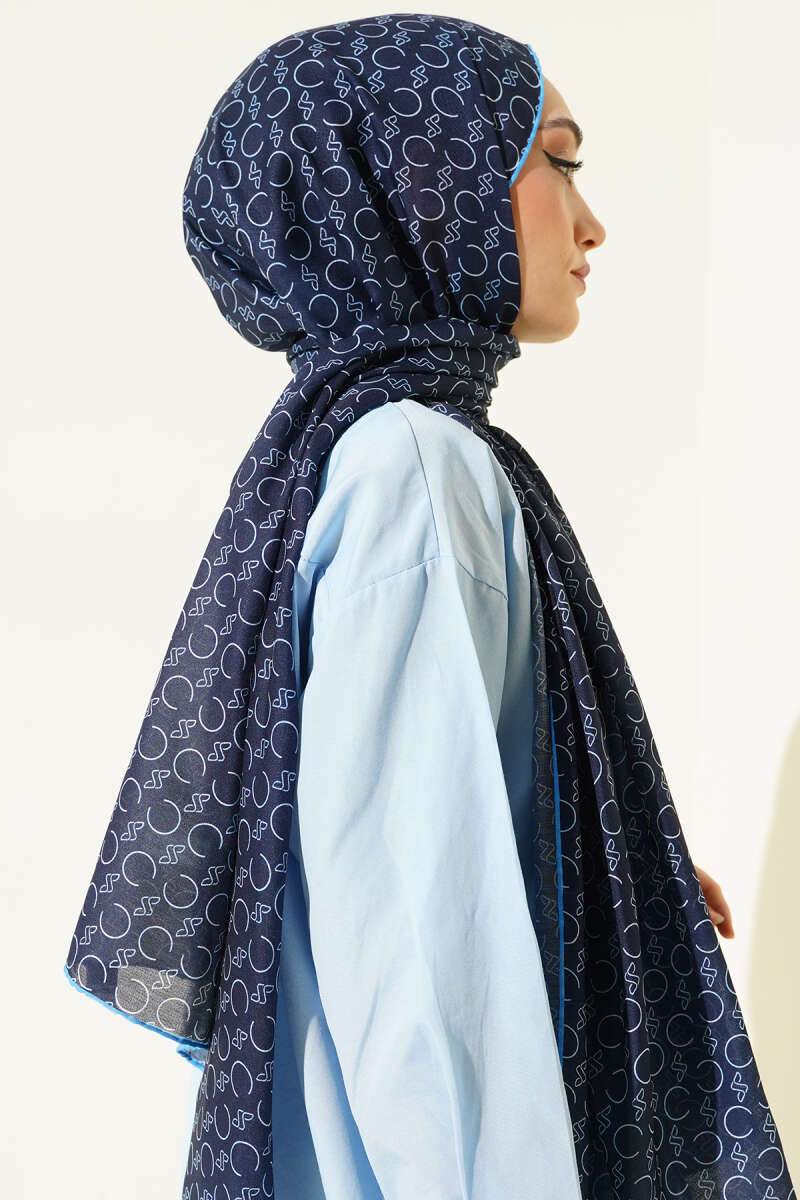 Desenli Ribanalı Demore Şal Lacivert Mavi