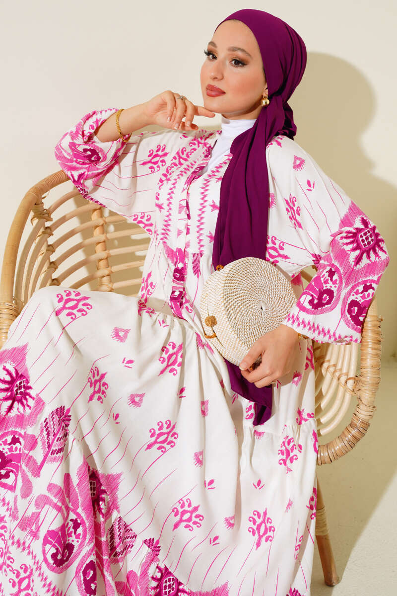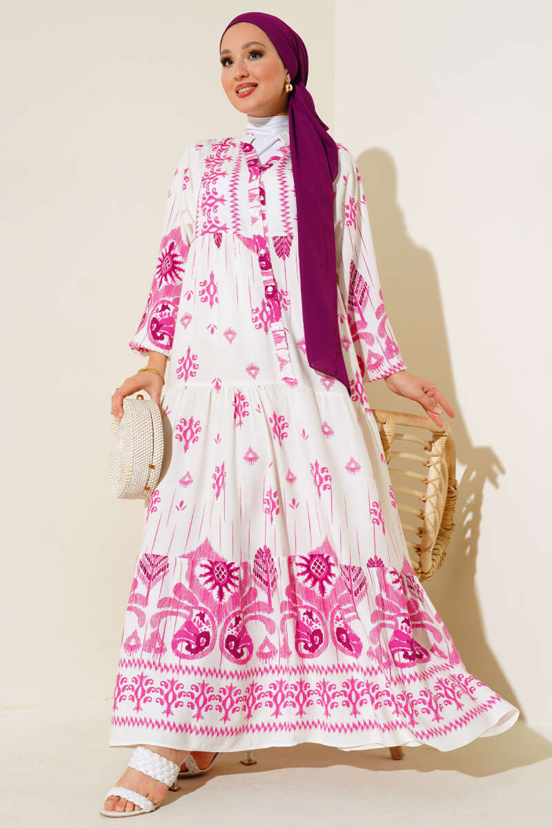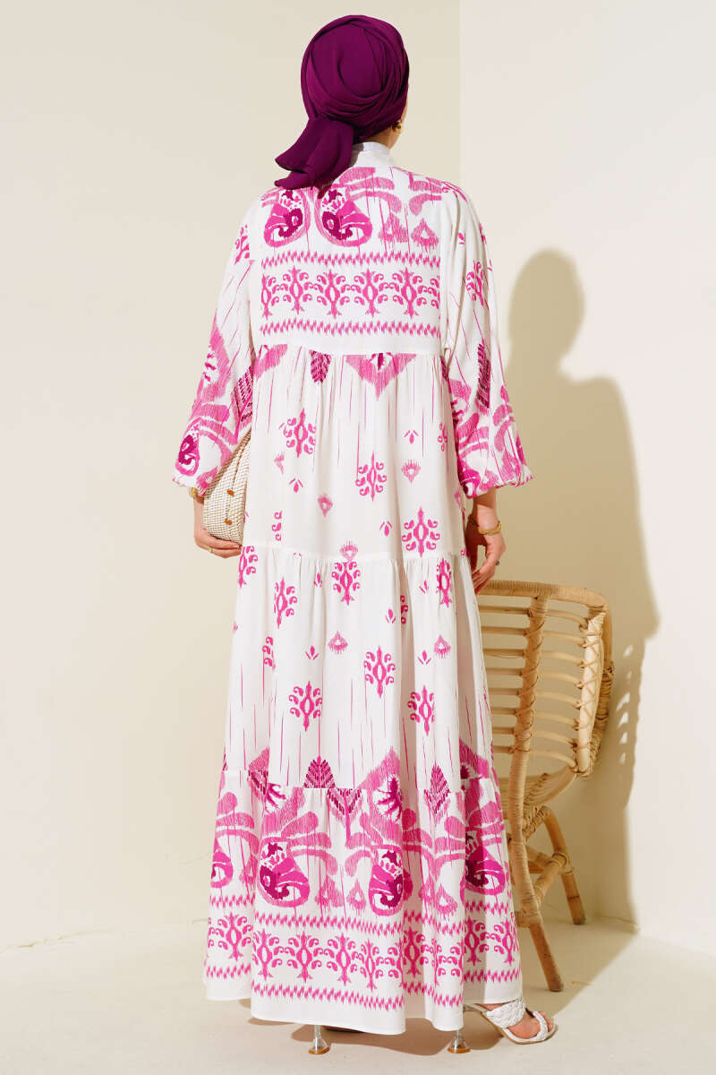 Paisley Desen Bel Lastikli Elbise Lacivert
