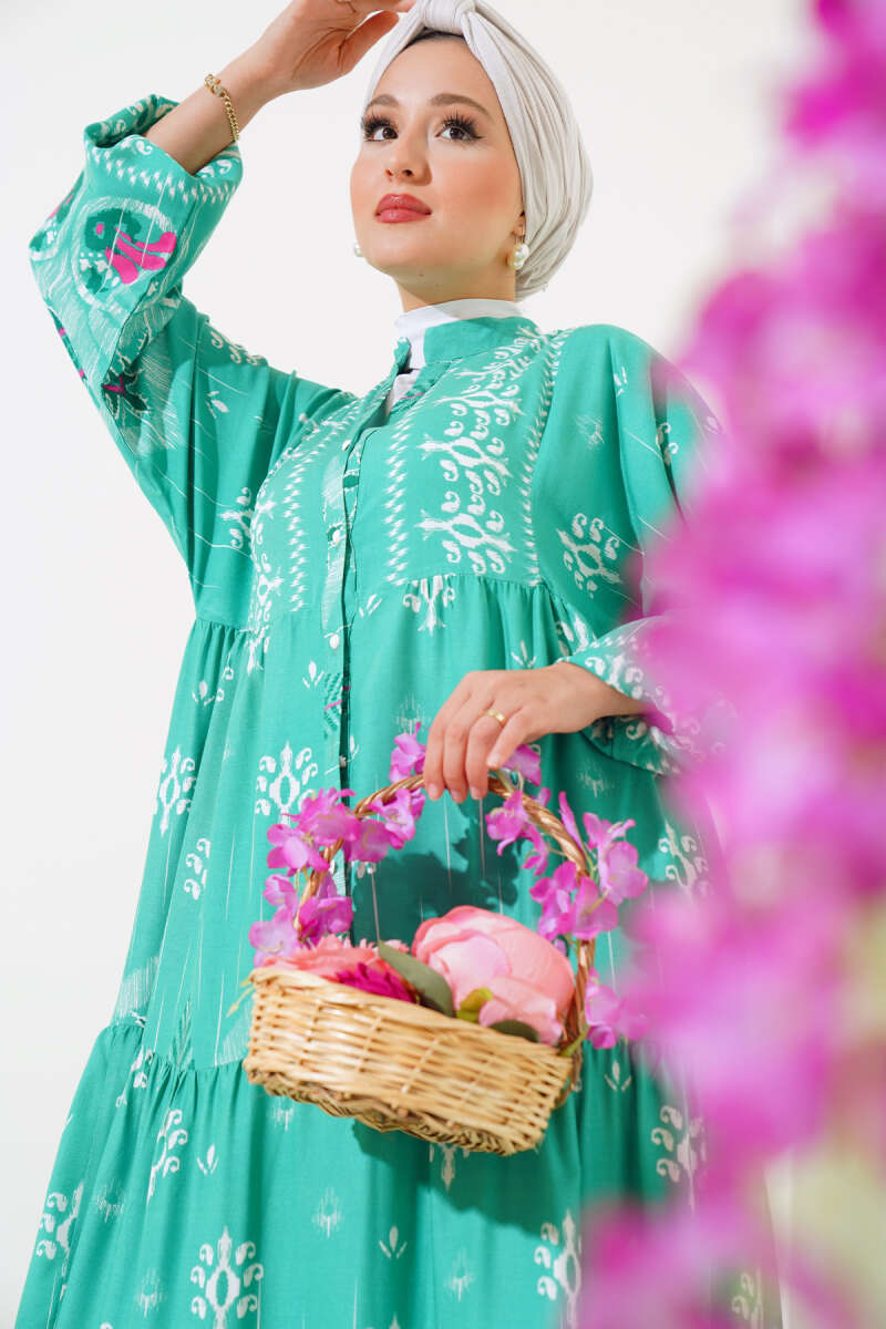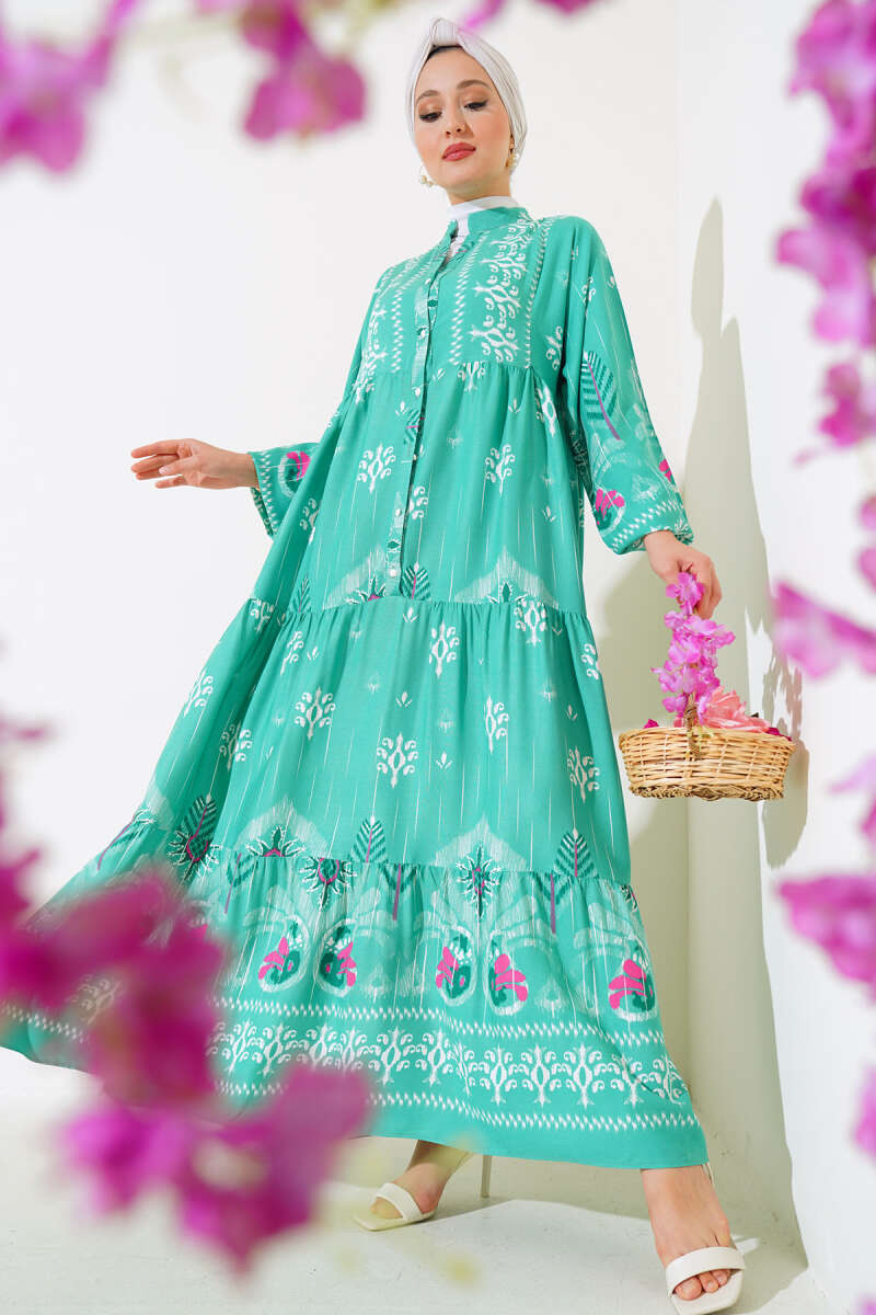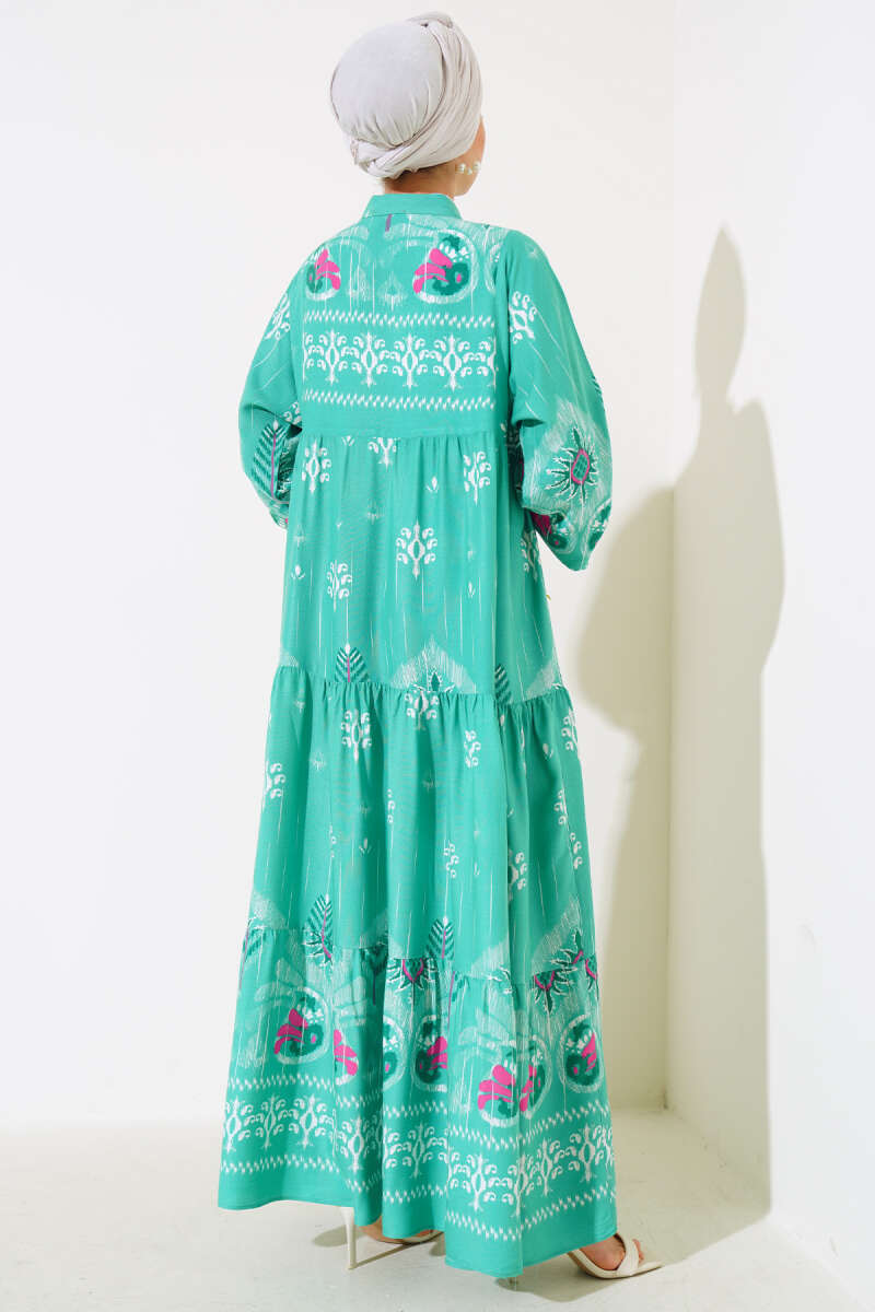 Desenli Salaş Kat Kat Elbise Mint