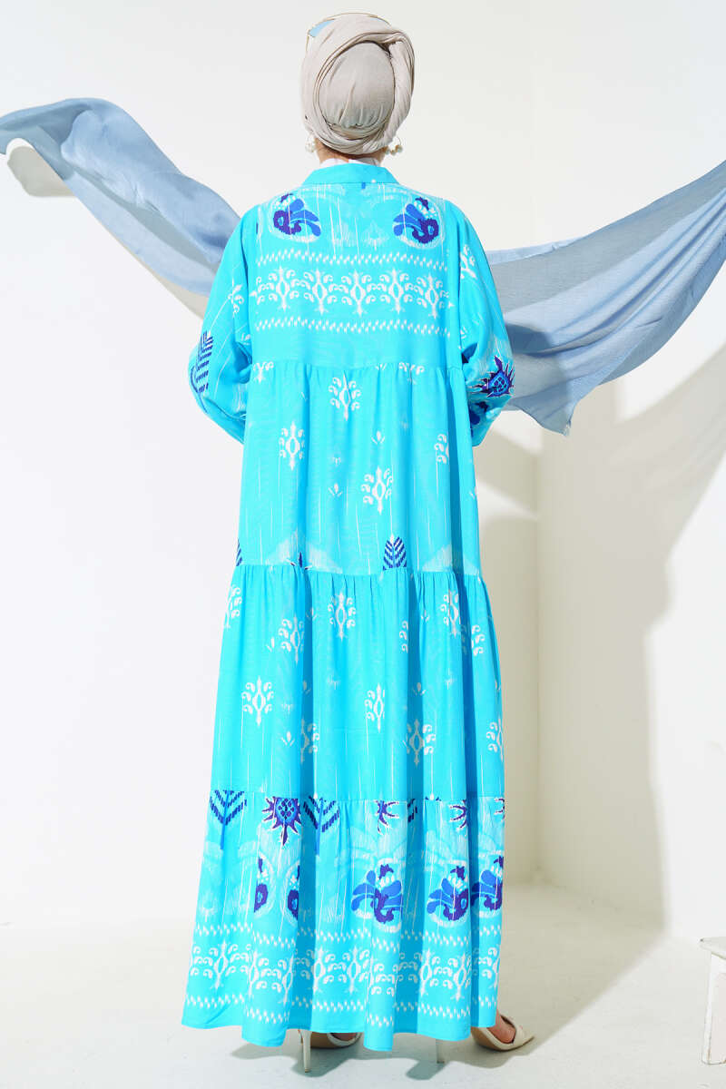 Boydan Düğmeli Kemerli Tensel Elbise İndigo