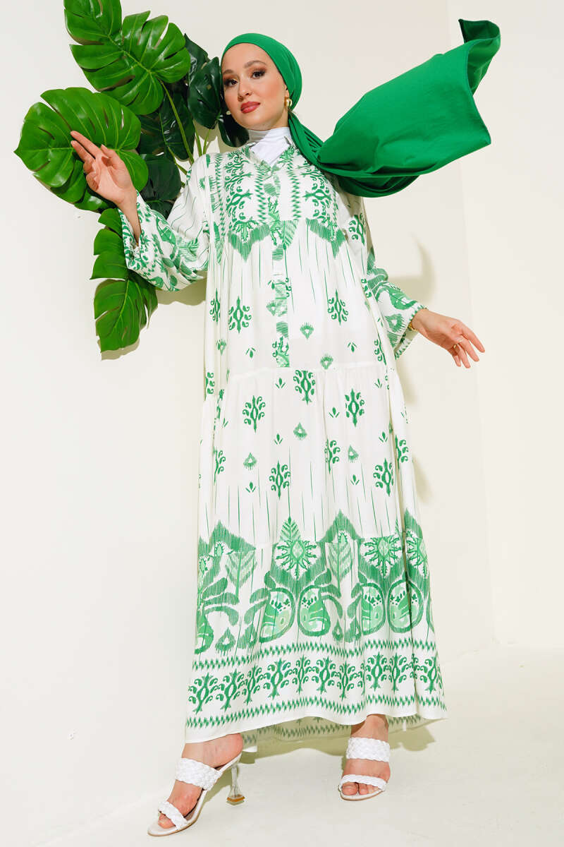 Desenli Salaş Kat Kat Elbise Yeşil
