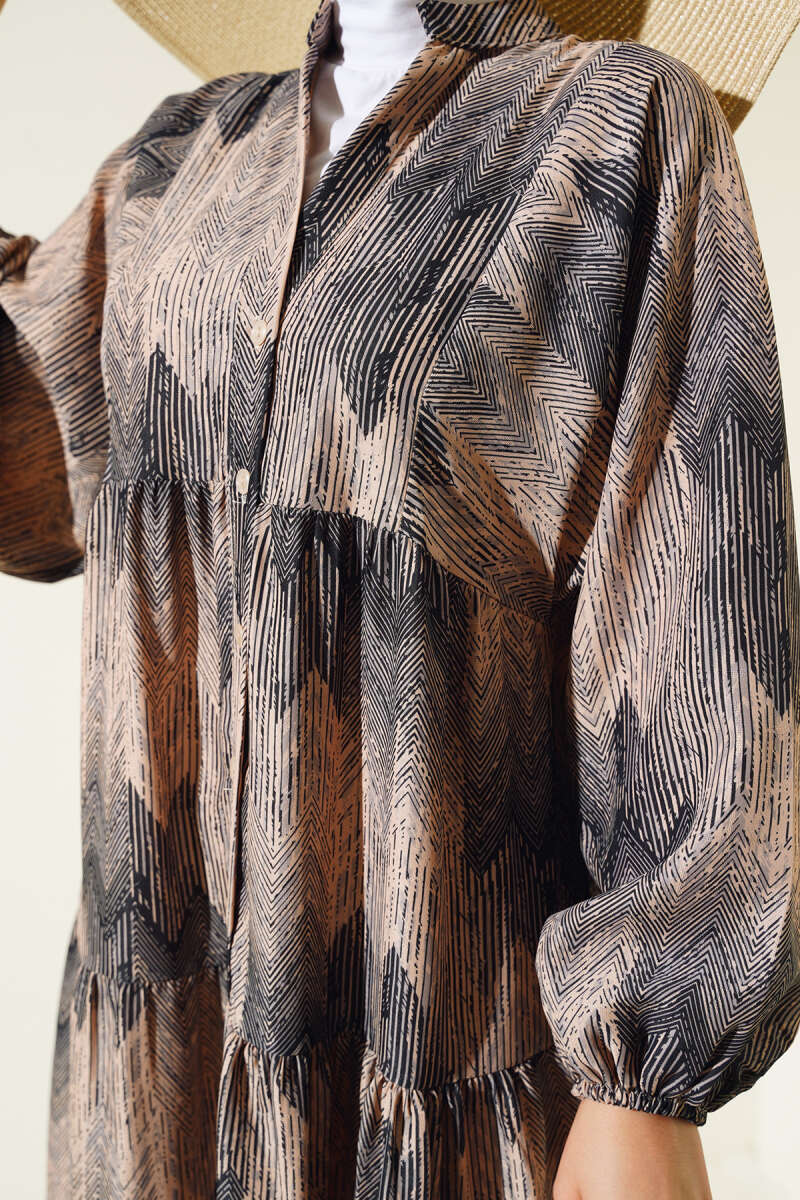 Çiçek Desenli Kemerli Taba Tunik