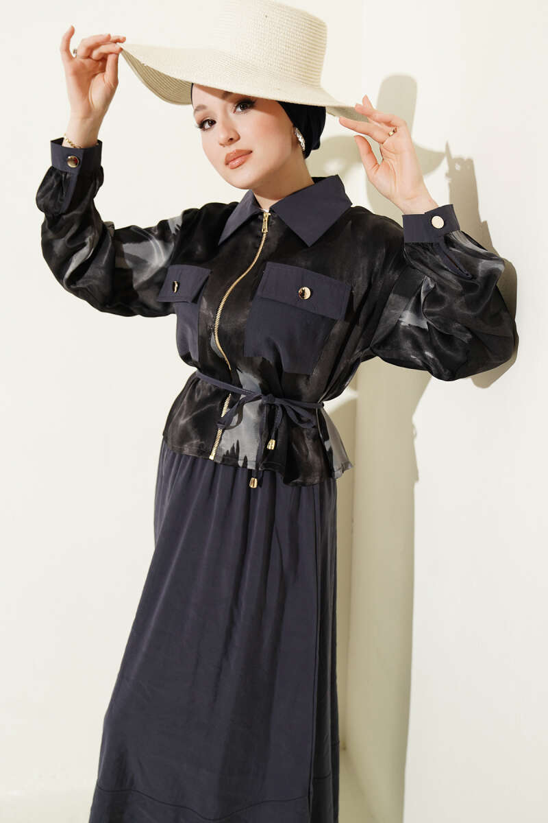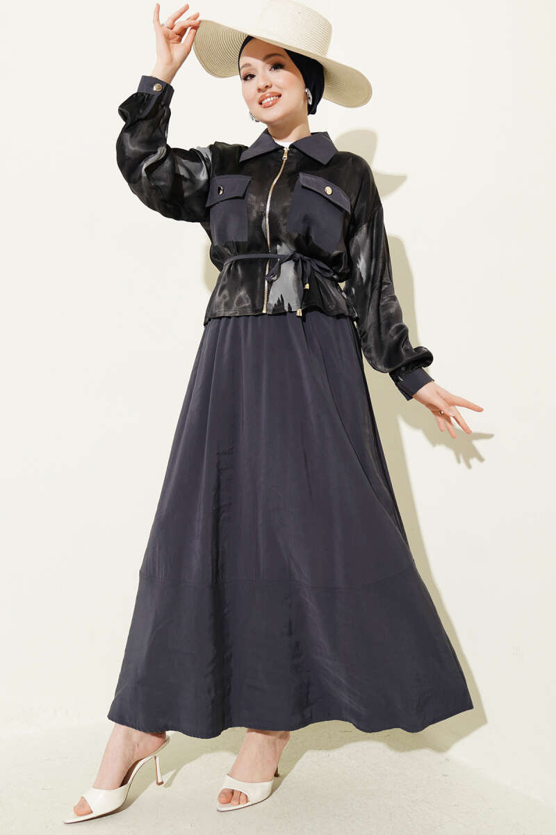 • Uyumlu Silüet: Geniş kesim etek yapısı yürürken zarif bir akışkanlık sağlarken, takımın bütününde kullanılan likra desteği sayesinde vücut hatlarınıza mükemmel uyum sağlar.