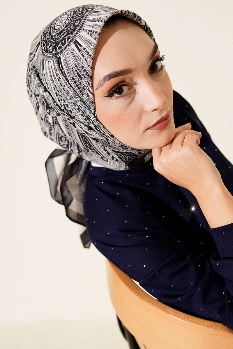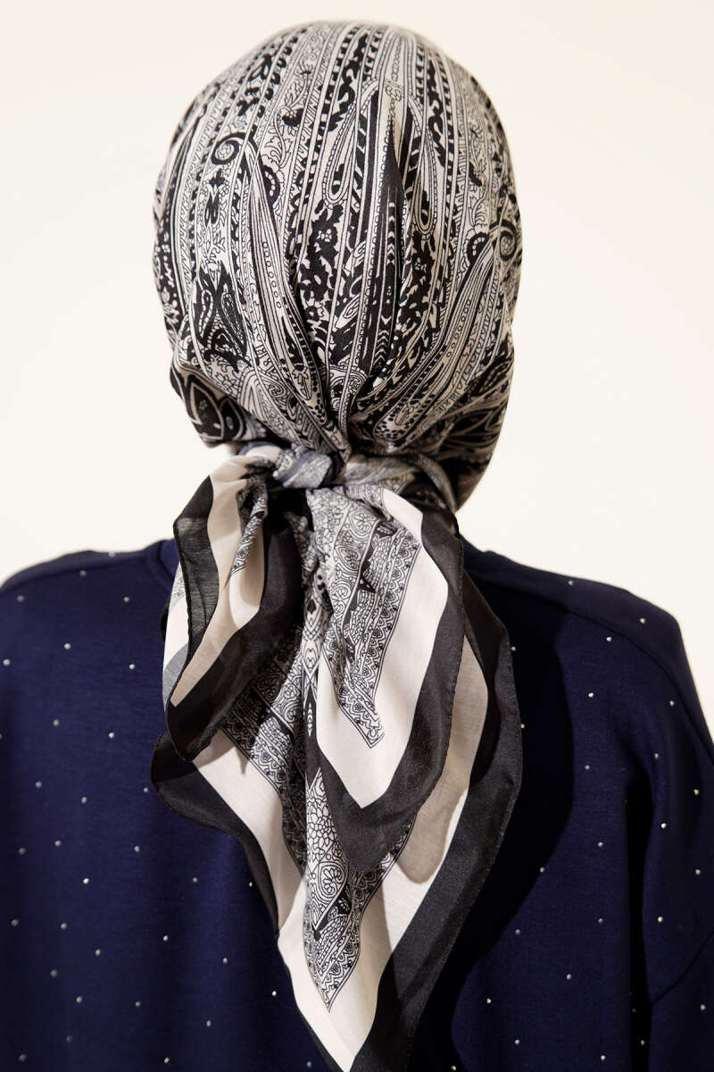 Desenli Lacivert Serisi Eşarp Asorti 2