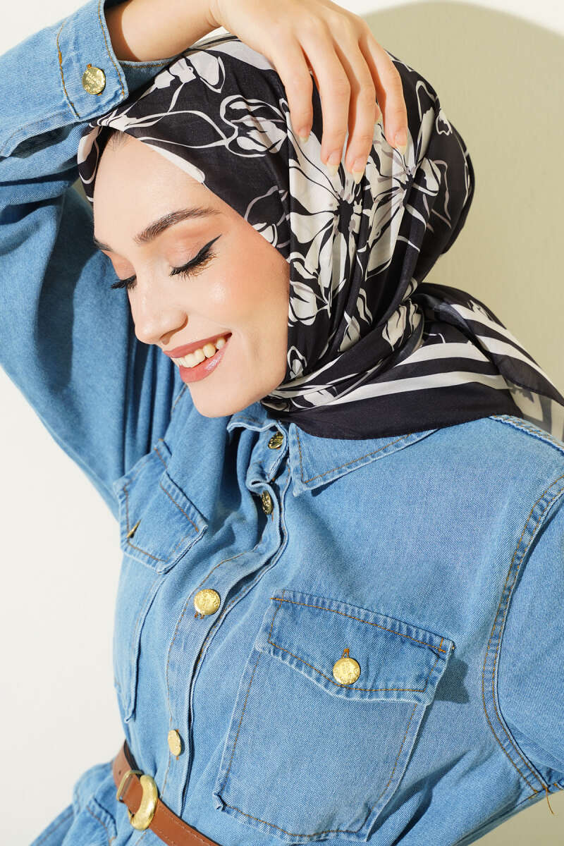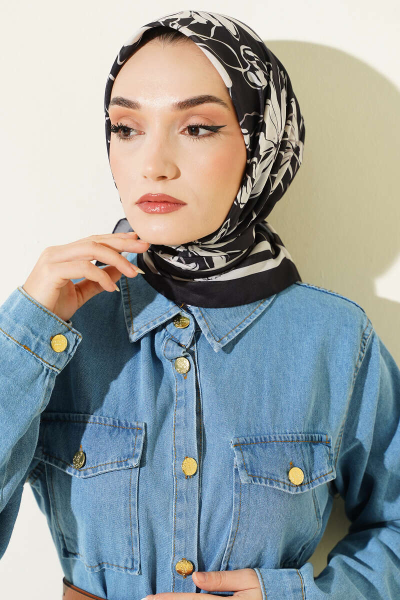 Desenli Demore Siyah Serisi Eşarp Asorti 9