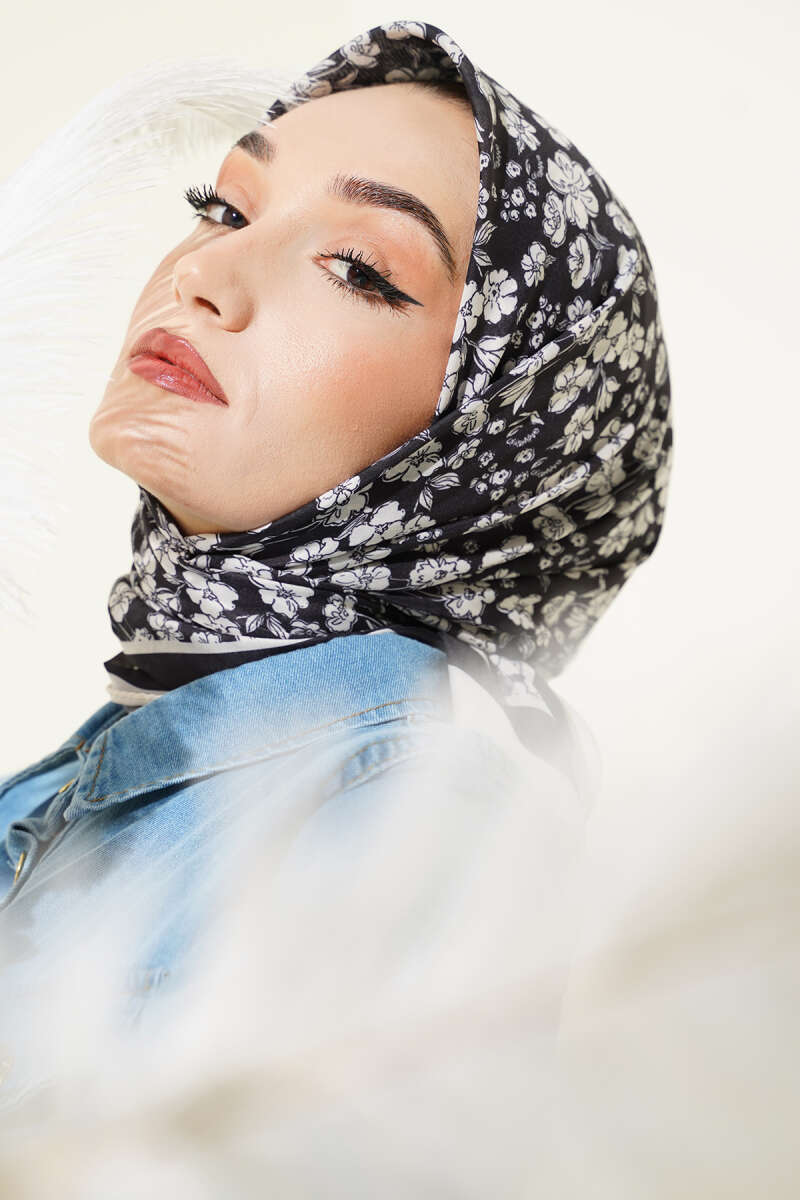 Desenli Demore Siyah Serisi Eşarp Asorti 9