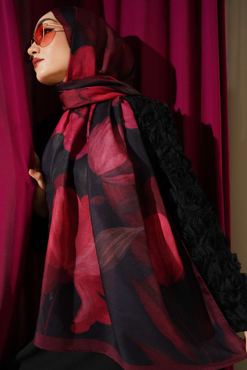 Desenli Soft Bordo Serisi Şal Asorti 5