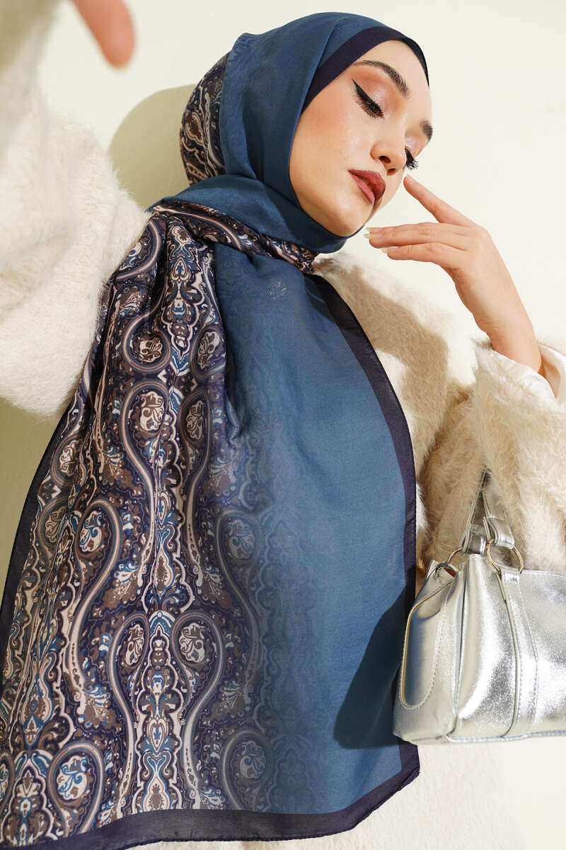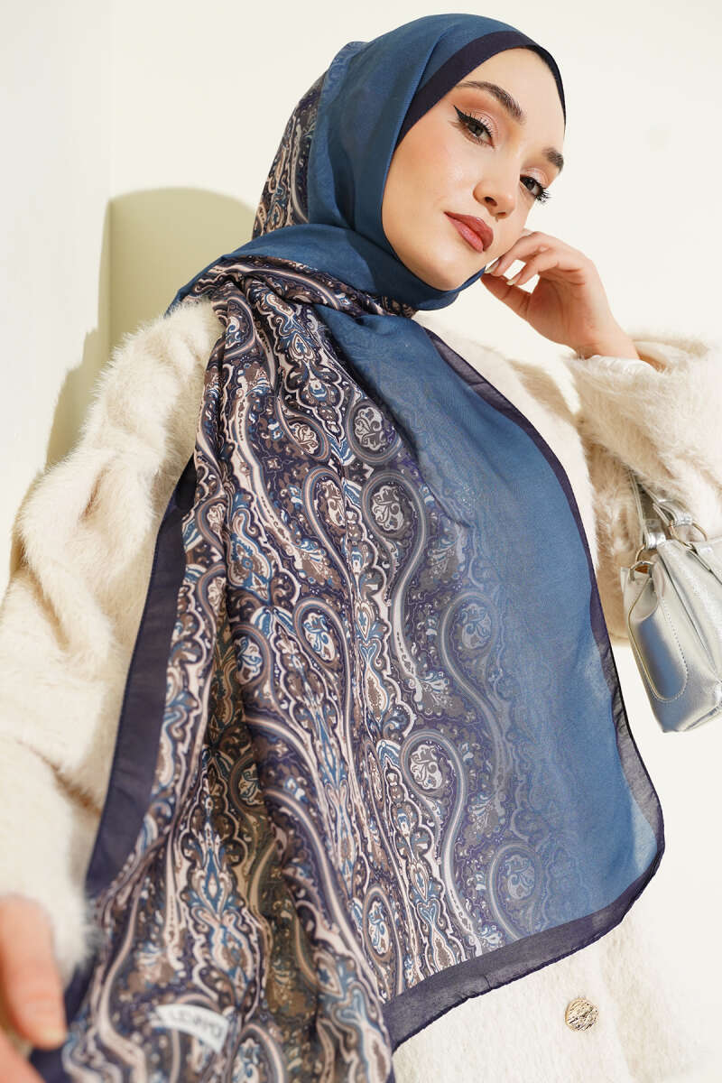 Desenli Soft Lacivert Serisi Şal Asorti 8