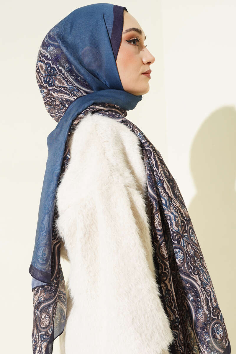 Desenli Soft Lacivert Serisi Şal Asorti 4