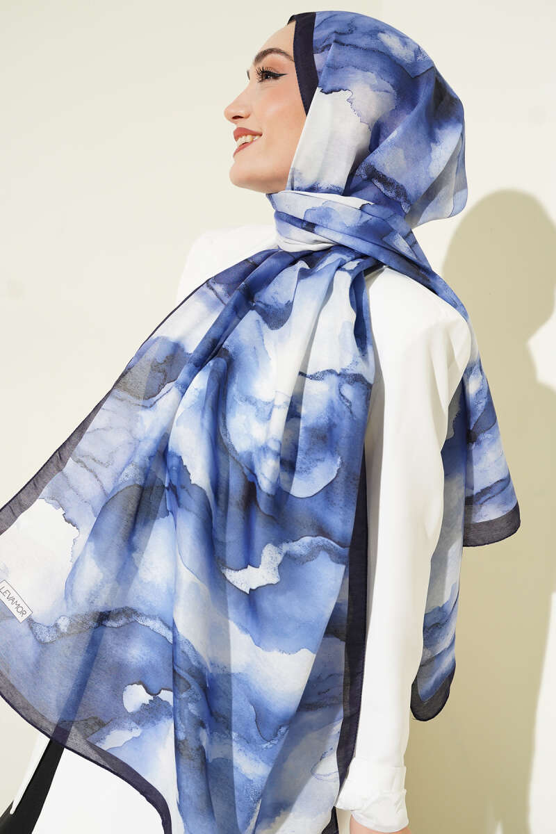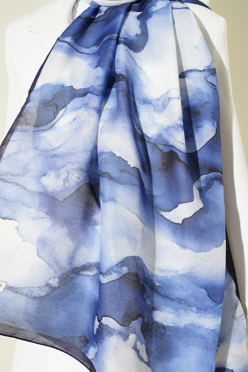 Desenli Soft Lacivert Serisi Şal Asorti 8