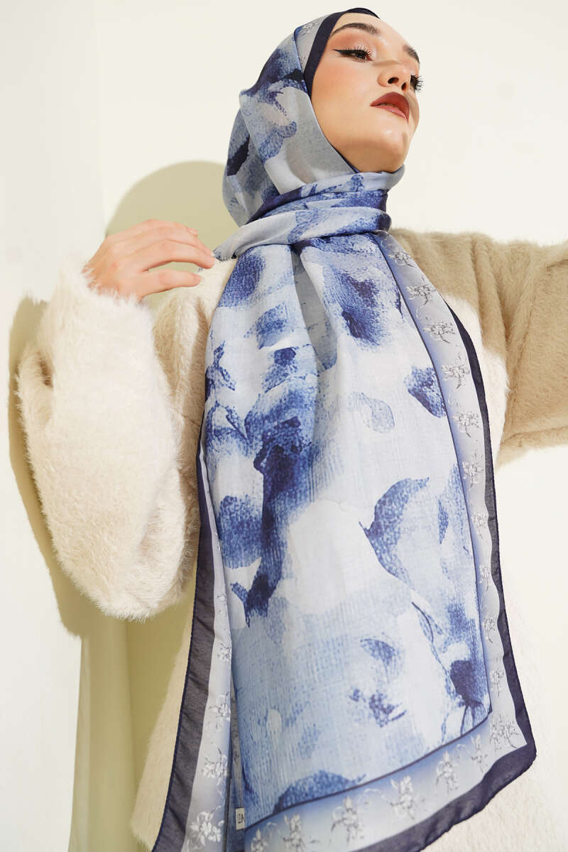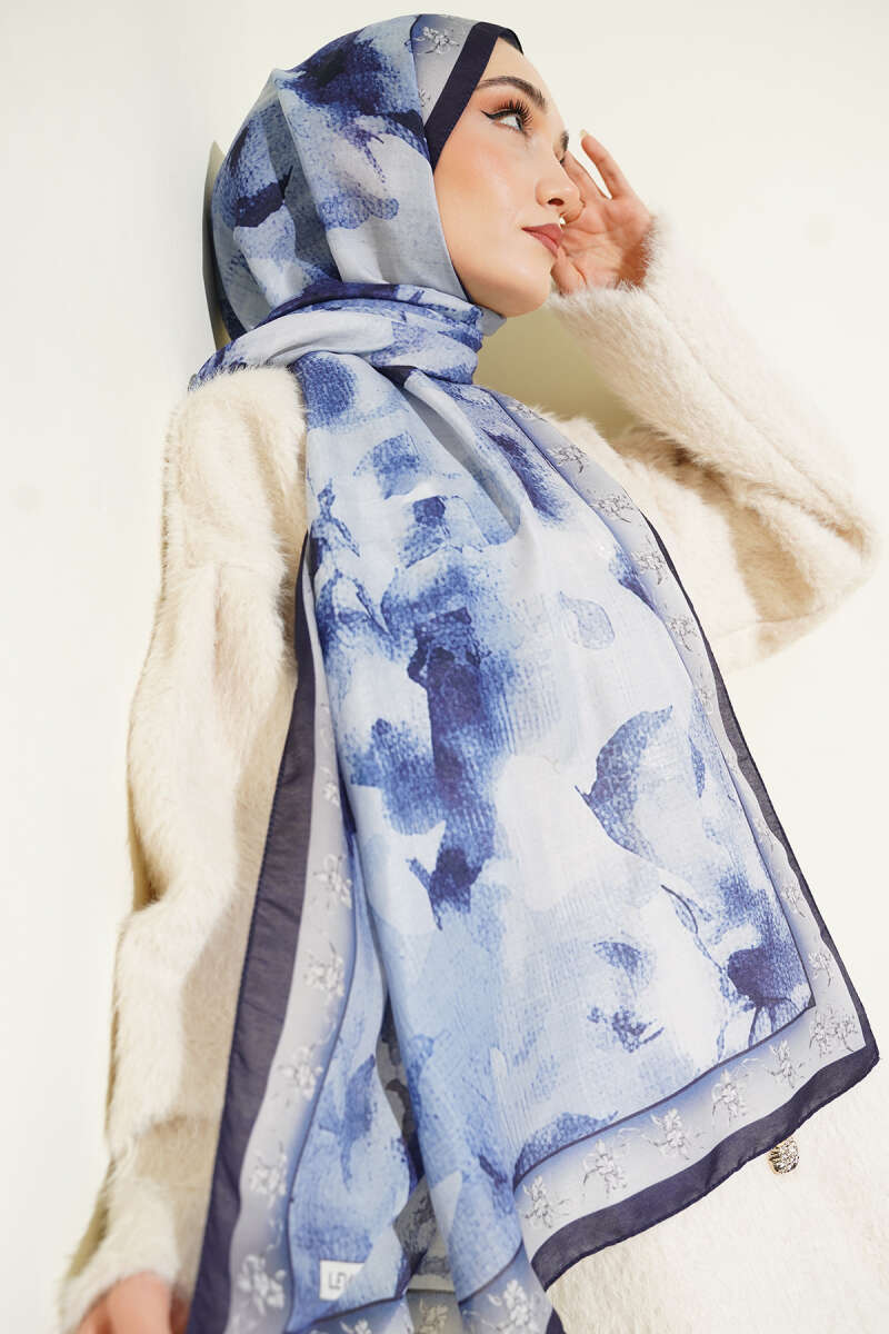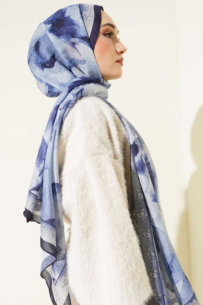Desenli Soft Lacivert Serisi Şal Asorti 8