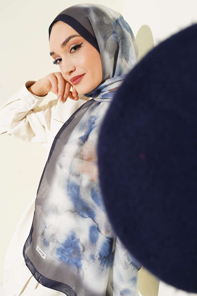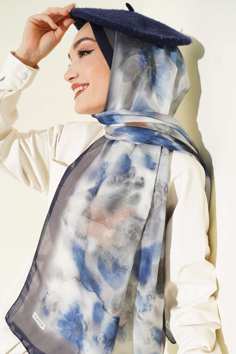Desenli Soft Lacivert Serisi Şal Asorti 5