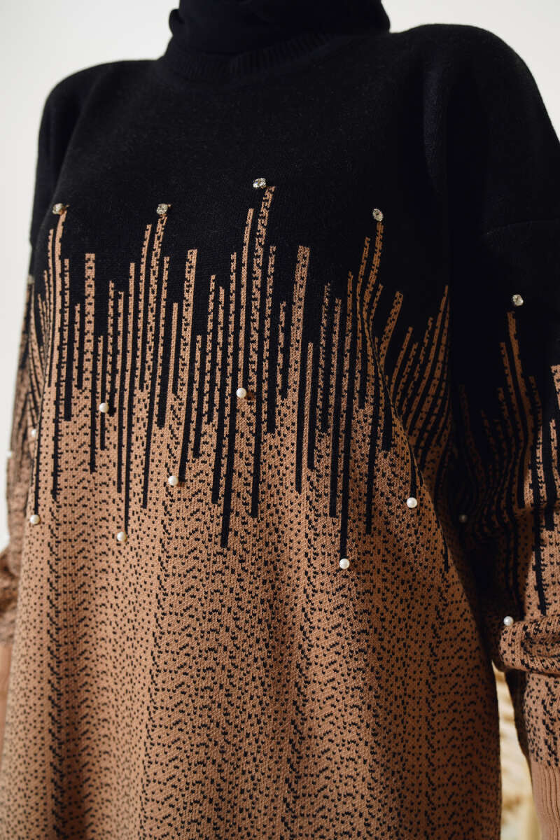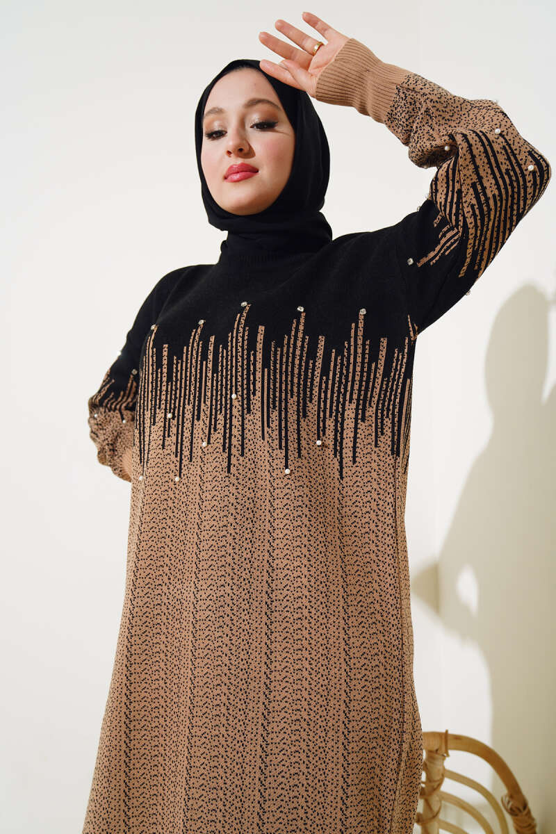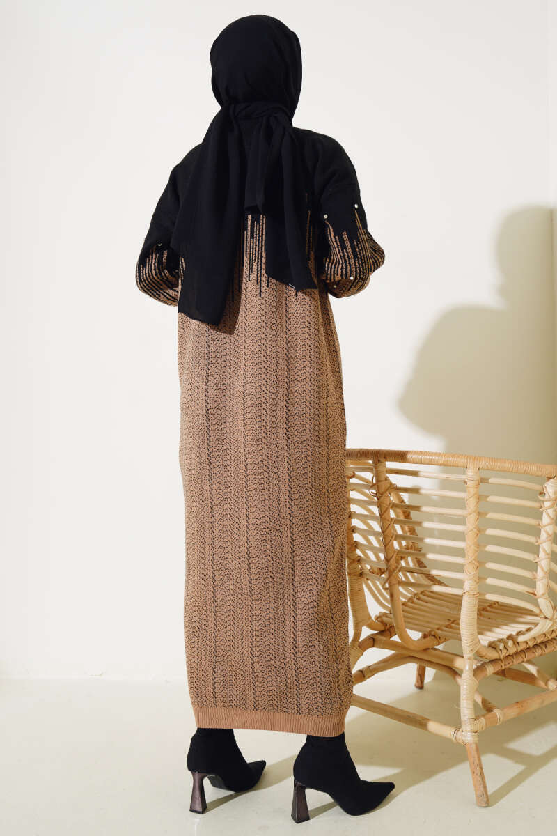 Bisiklet Yaka Bel Tünel Detaylı Elbise Acı Kahve