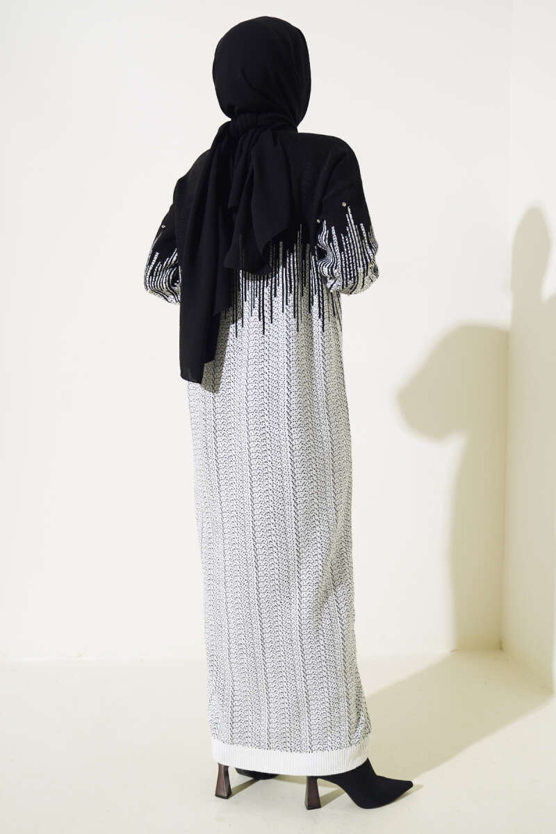 Yakası Yarım Fermuarlı Triko Elbise Taş
