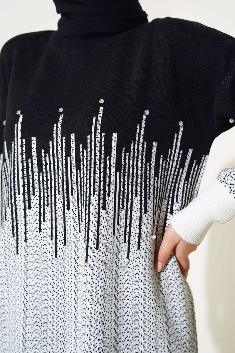 Yarım Boğazlı Kolu Fitilli Triko Tunik Siyah