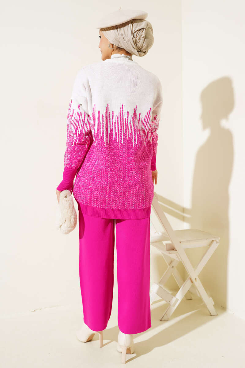 Taşlı Baklava Desen Triko İkili Takım Kahve