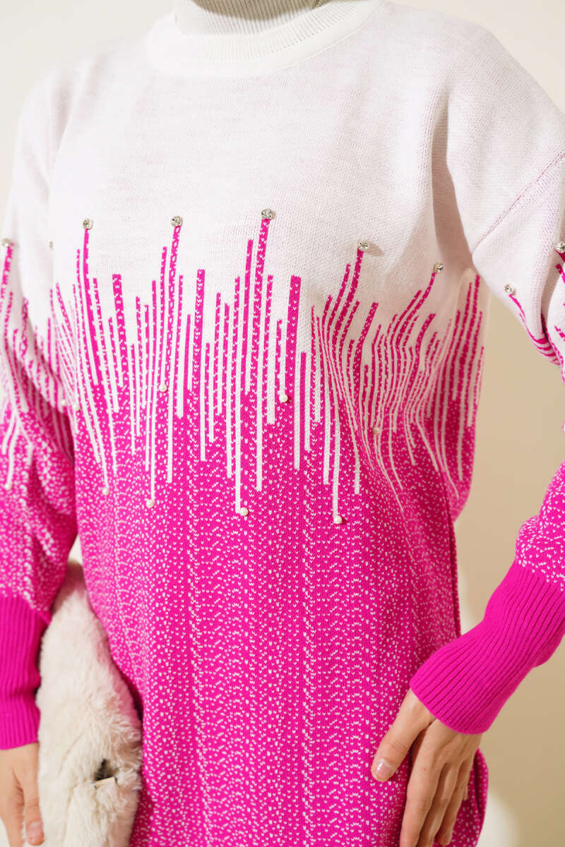 Taşlı Baklava Desen Triko İkili Takım Zümrüt