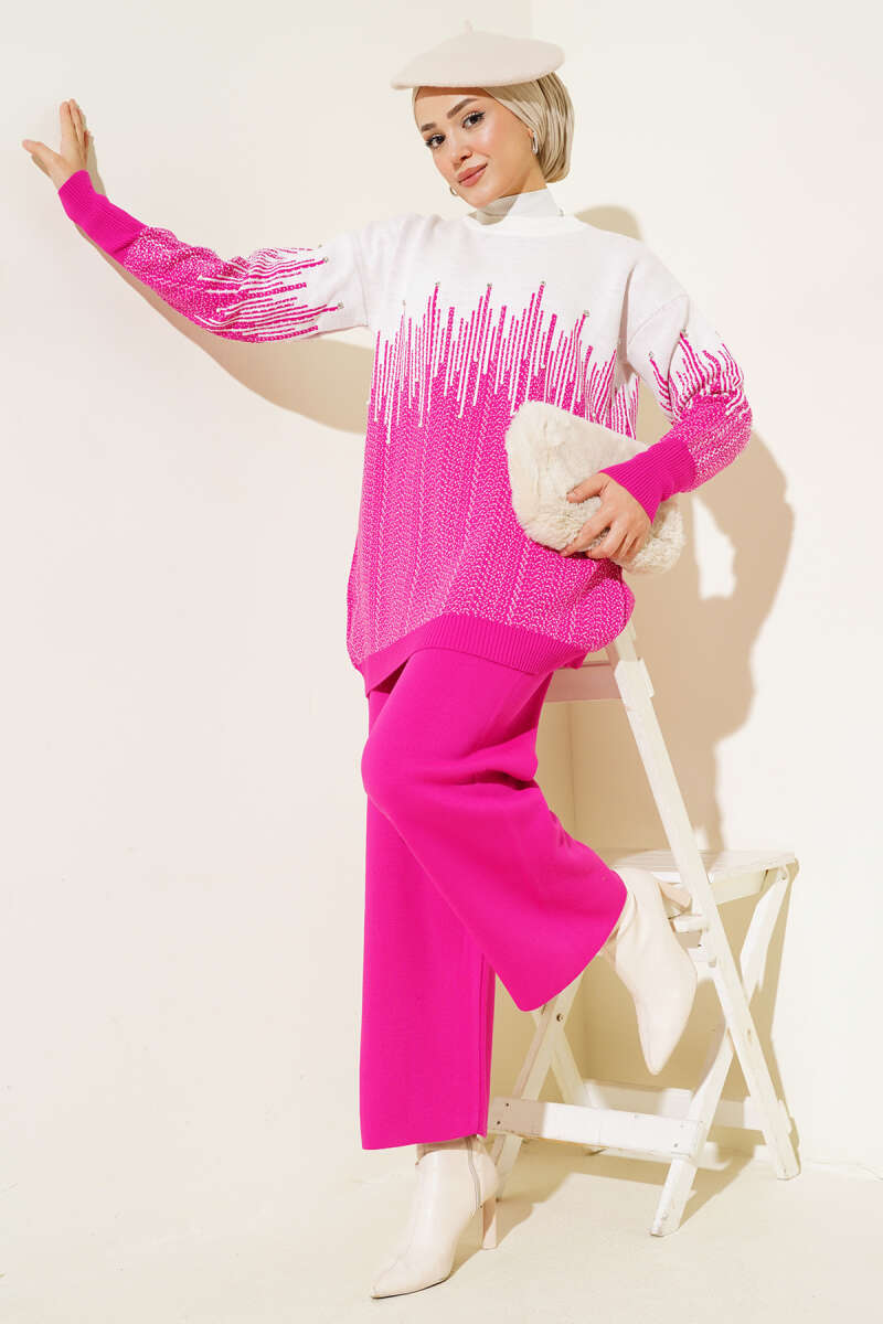 Balon Kol Balıkçı Yaka Triko İkili Takım Taş