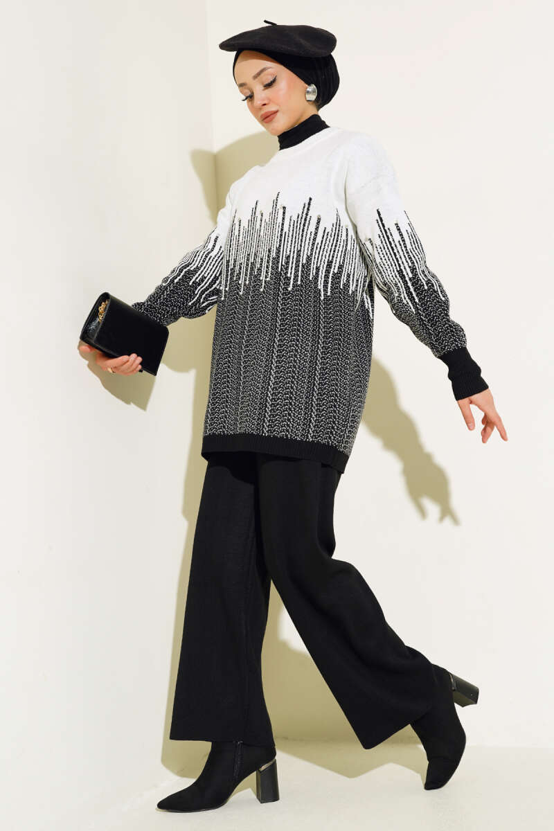 Balon Kol Balıkçı Yaka Triko İkili Takım Siyah