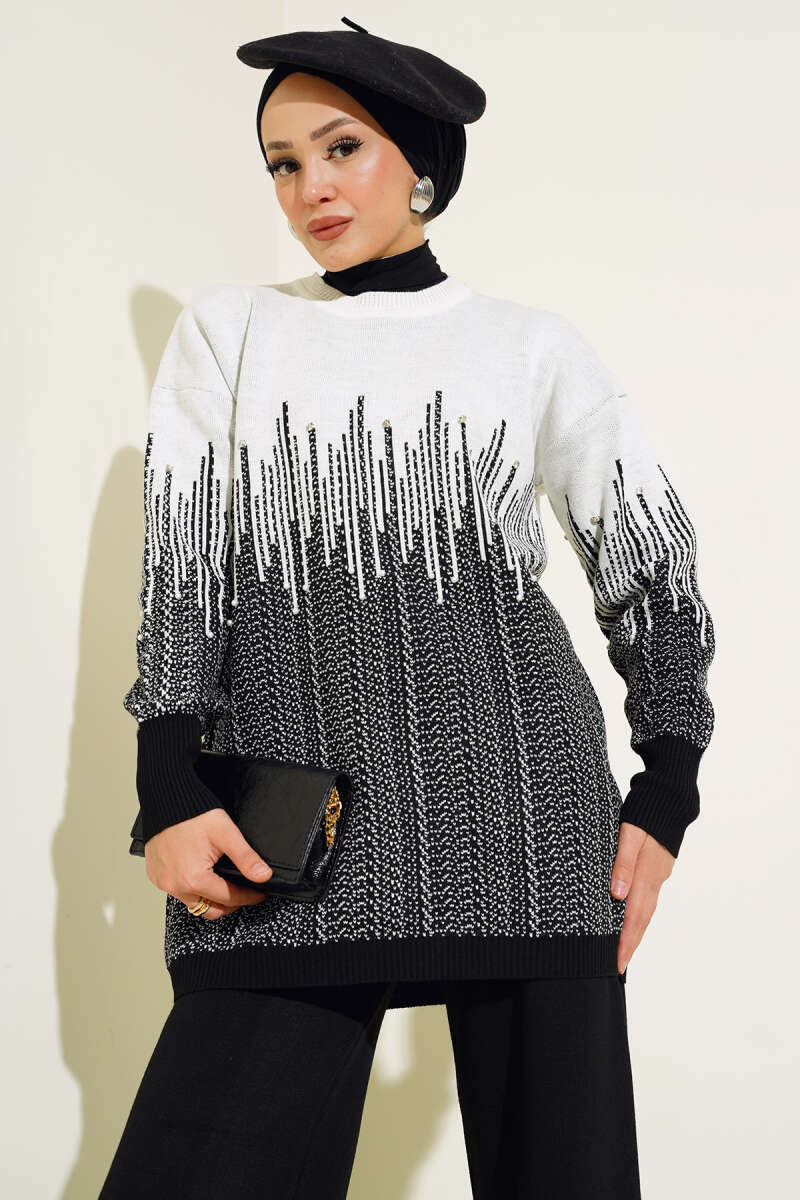 Balon Kol Balıkçı Yaka Triko İkili Takım Taş