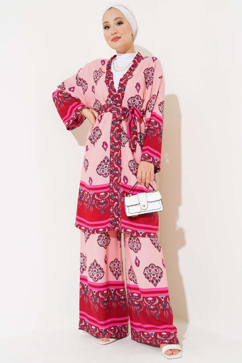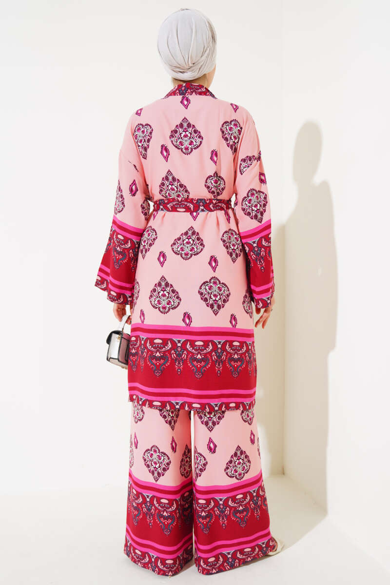 Fiyonk Desen Düğmeli Pijama Takım Pembe