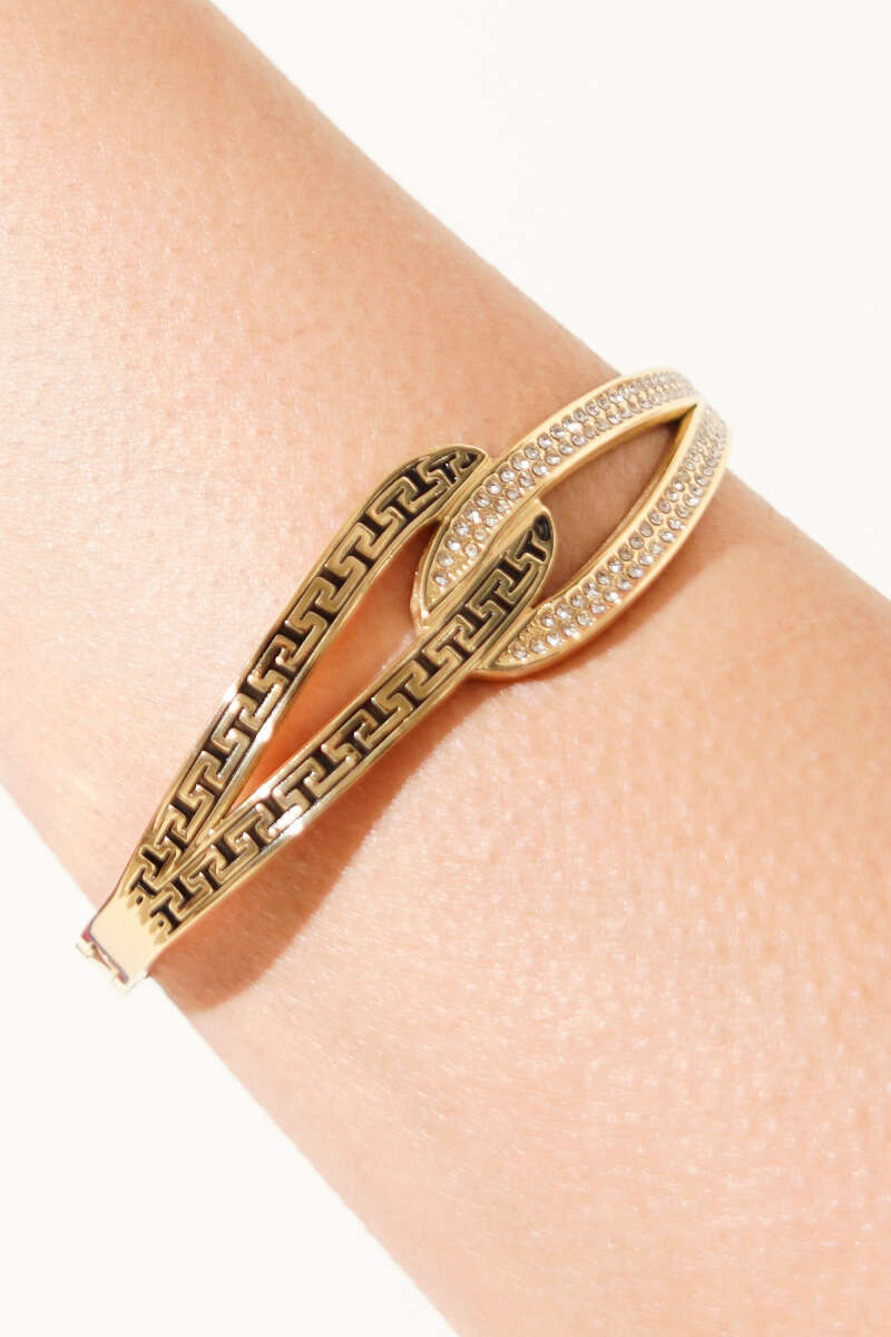Desenli ve Işıltılı Modern Kelepçe Bileklik Gold