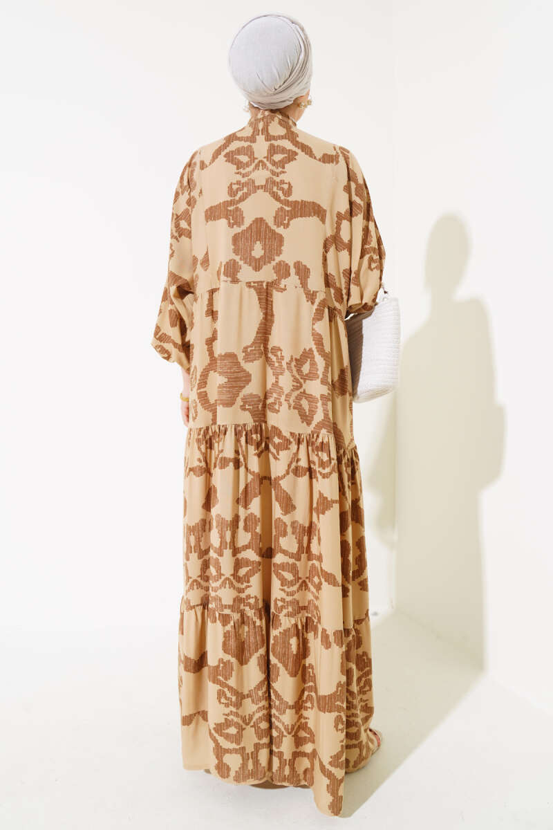 Düğmeli Tensel İnce Kemerli Elbise Kahve