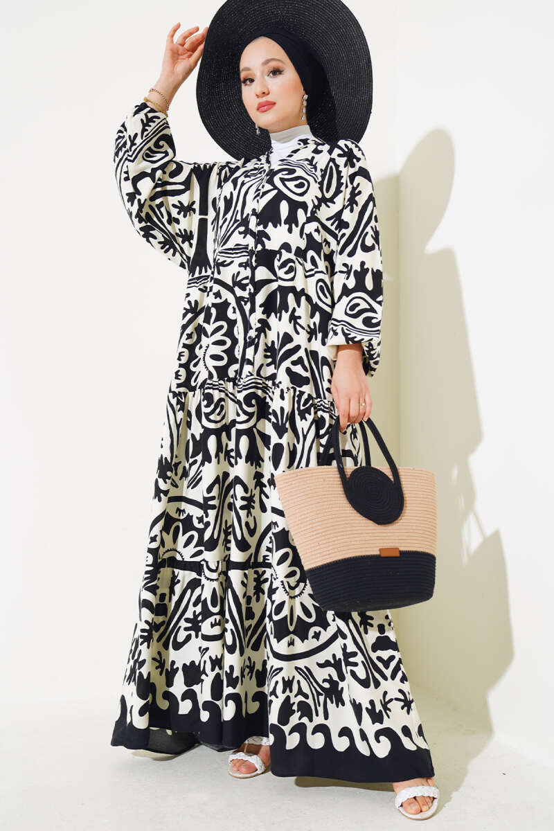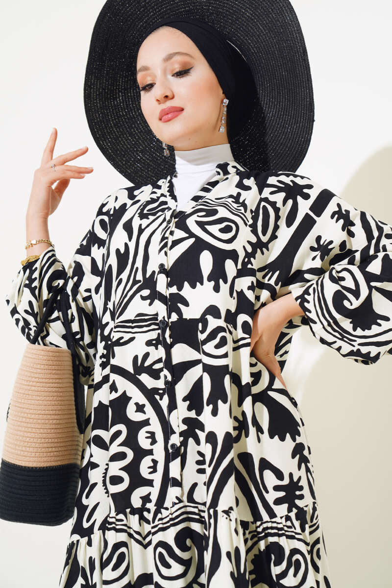 Gömlek Yaka Düğmeli Triko Elbise Siyah