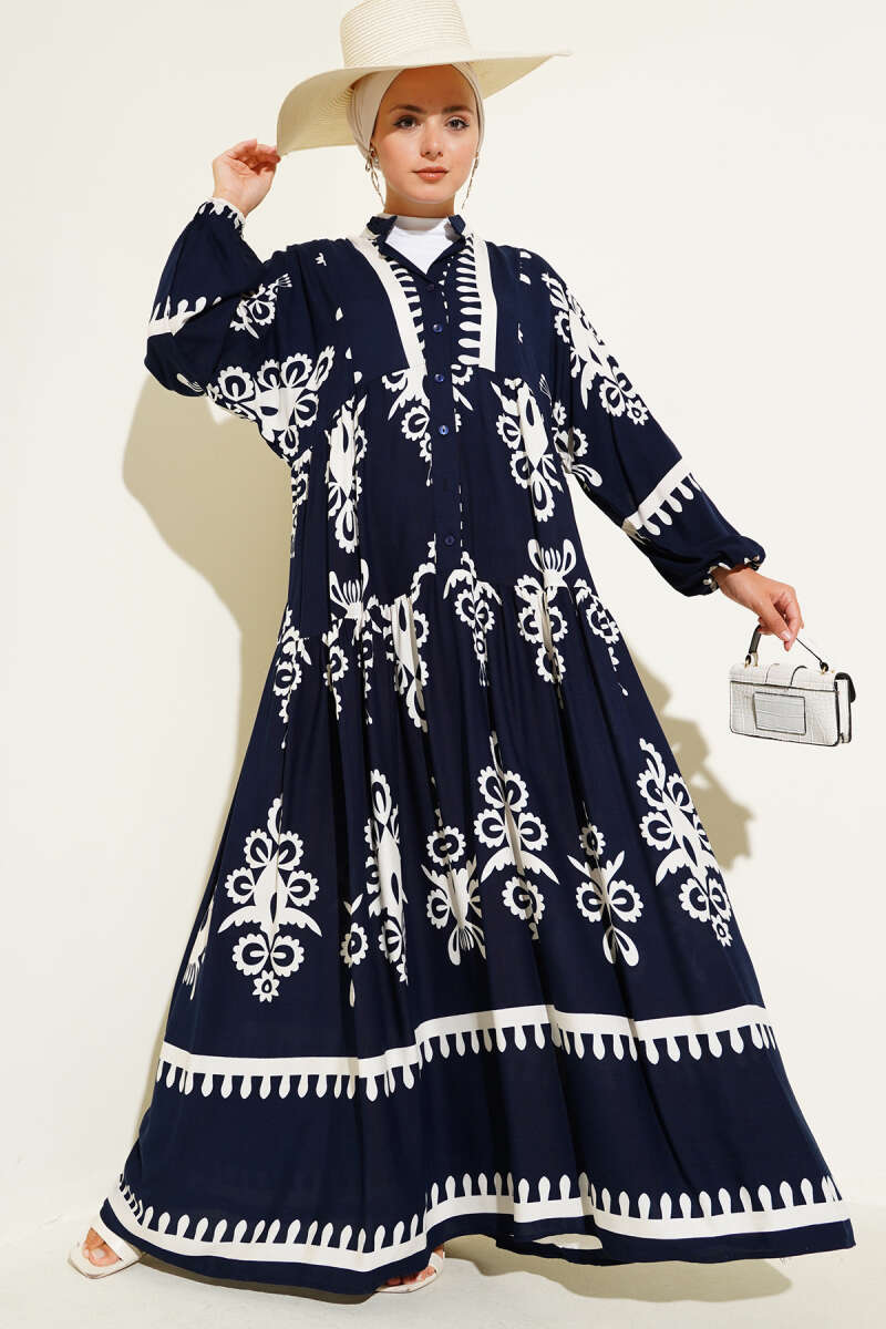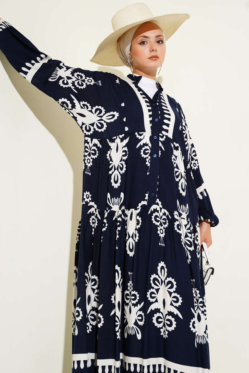 Kuşaklı Dik Fitilli Kaşe Elbise Lacivert