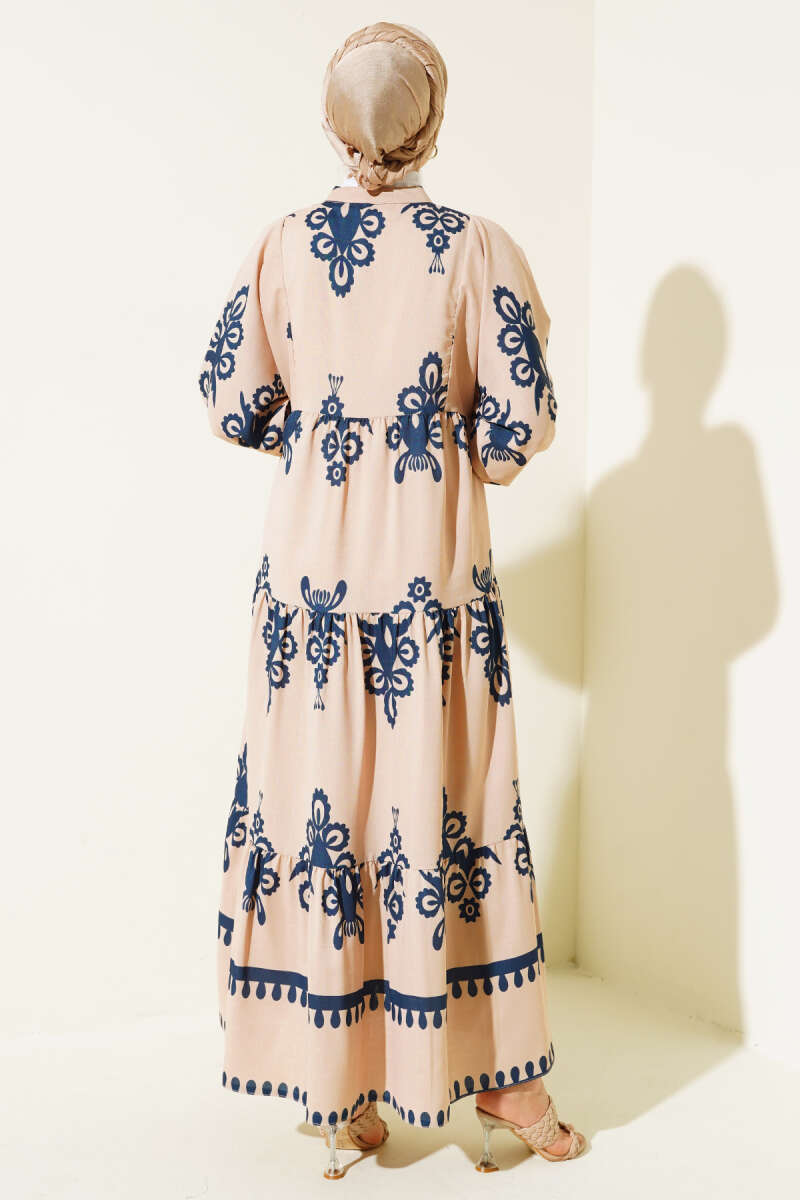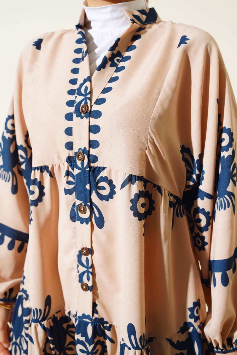 Yarım Yaka Fermuarlı Scuba Elbise Lacivert