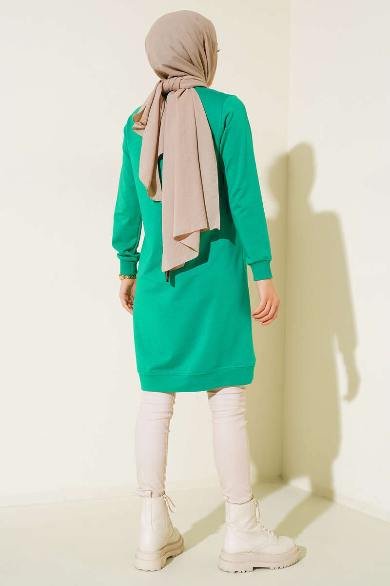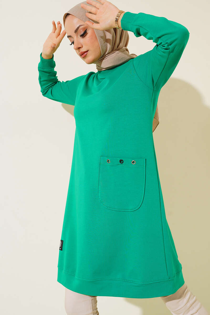 Tuniğimiz uzun modeldir. Bisiklet yakaya sahip tuniğimizin etek ucunda arma detayı bulunmaktadır. Üzerinde bulunan cep kuş gözü detaylıdır ve süs ceptir. Renk seçenekleri mevcuttur.