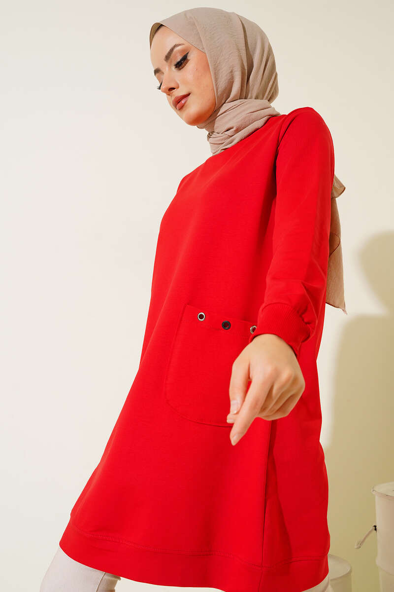 Tuniğimiz uzun modeldir. Bisiklet yakaya sahip tuniğimizin etek ucunda arma detayı bulunmaktadır. Üzerinde bulunan cep kuş gözü detaylıdır ve süs ceptir. Renk seçenekleri mevcuttur.