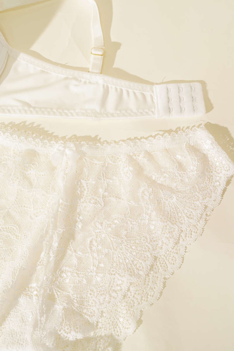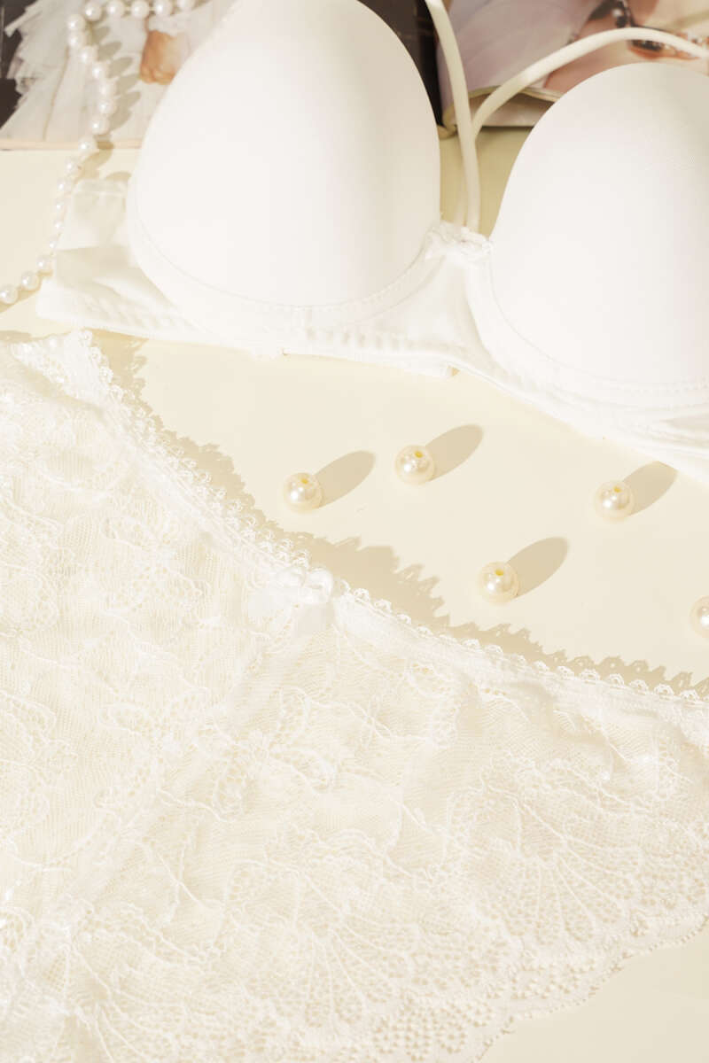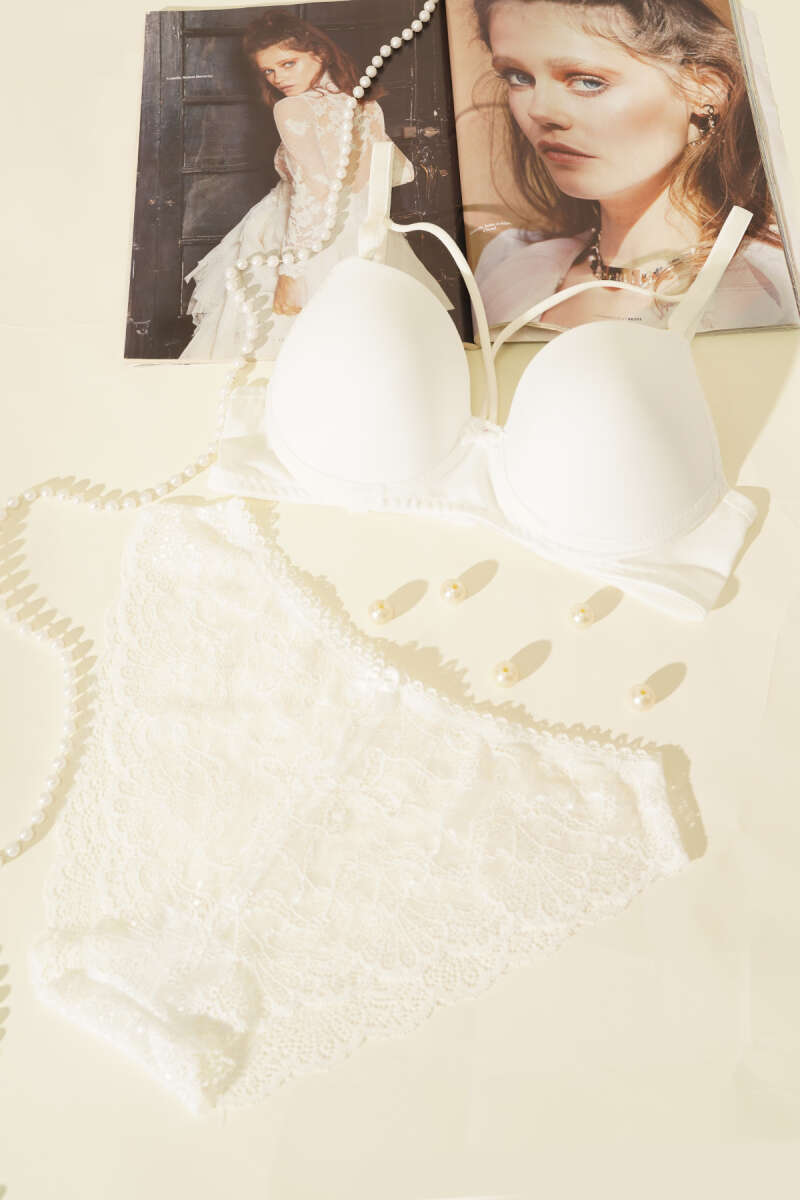 Destekli Çapraz İpli Kurdeleli Mikro Sütyen Takım Ekru