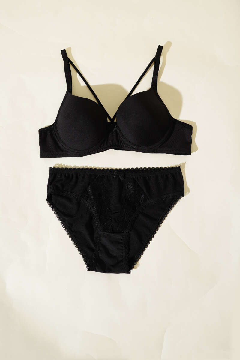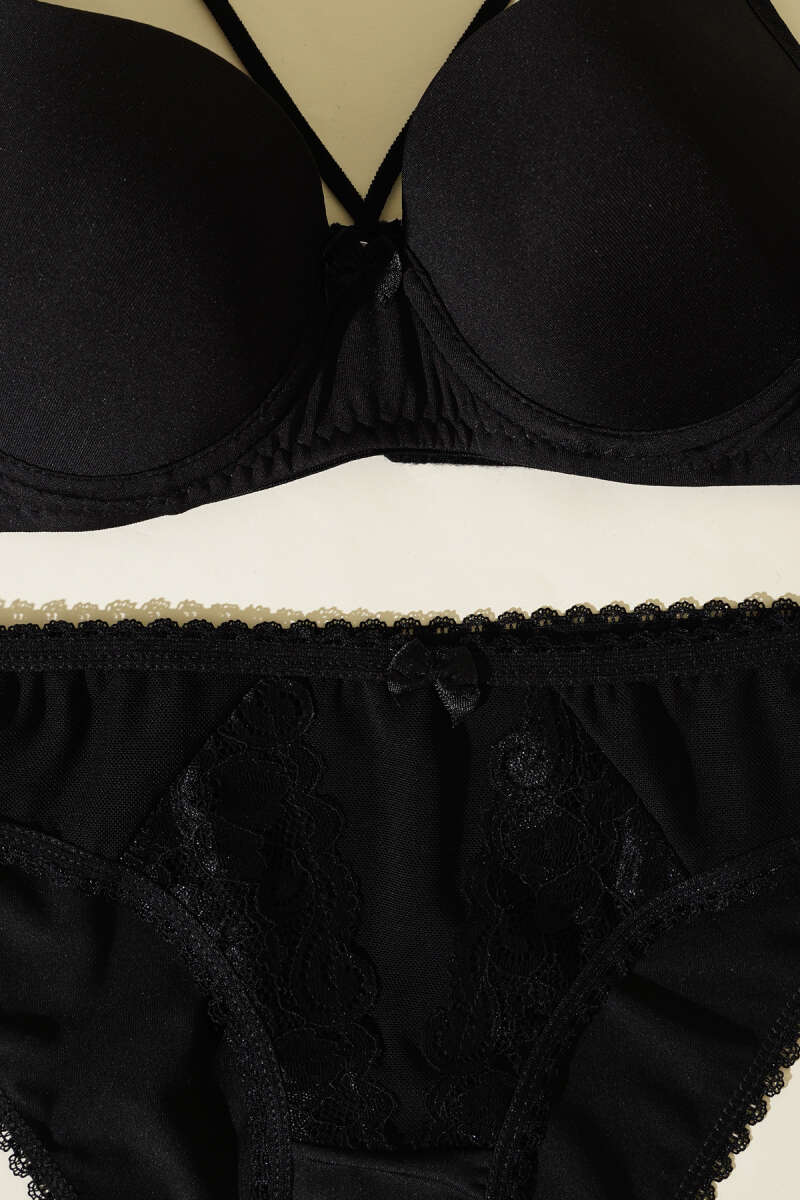 Destekli Çapraz İpli Kurdeleli Mikro Sütyen Takım Siyah
