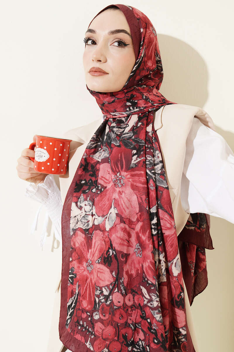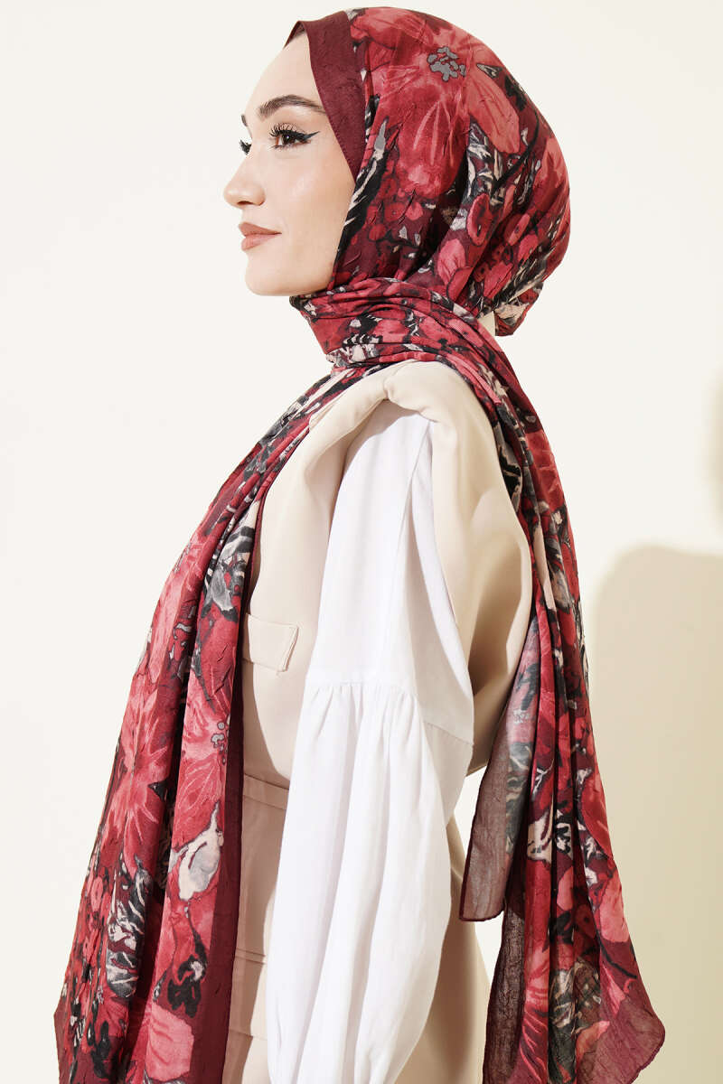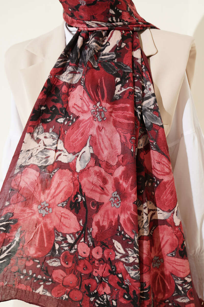 Dijital Baskılı Floral Bambu Şal Bordo