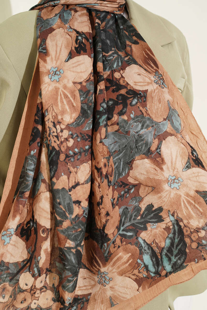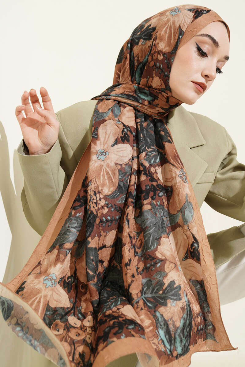 Dijital Baskılı Floral Bambu Şal Camel