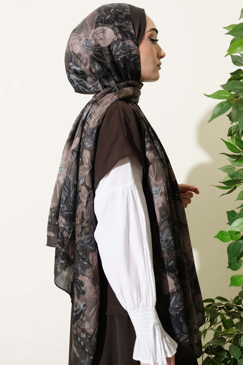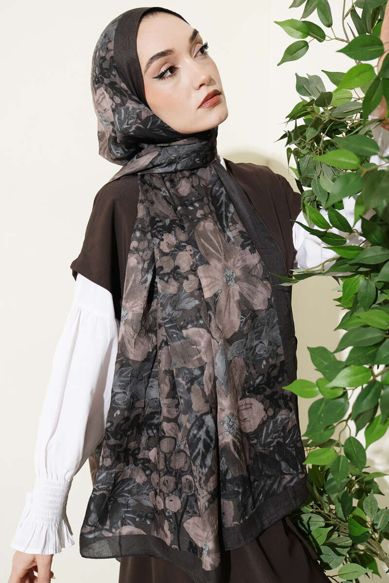 Dijital Baskılı Floral Bambu Şal Haki