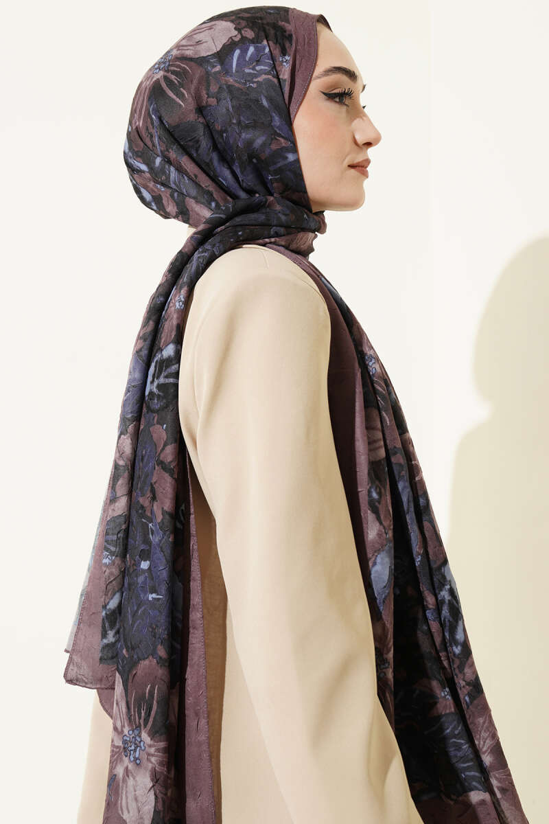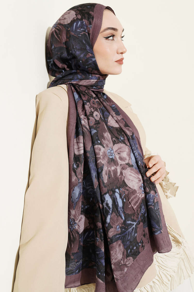 Dijital Baskılı Floral Bambu Şal Soft Kahve