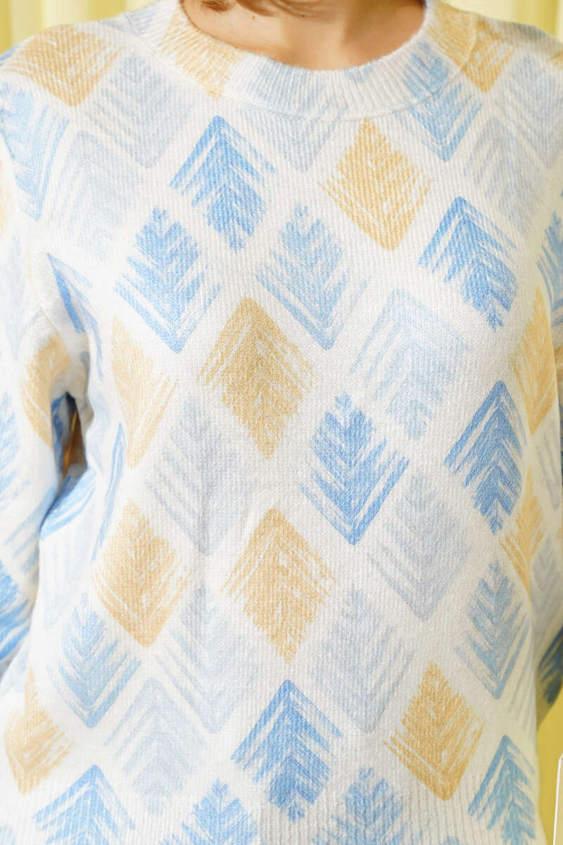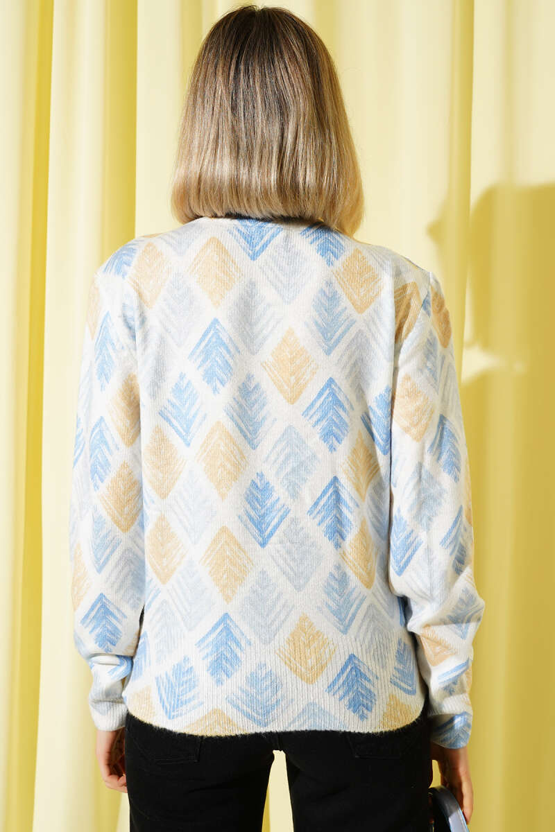 Leopar Baskılı Üç İplik Sweatshirt Ekru