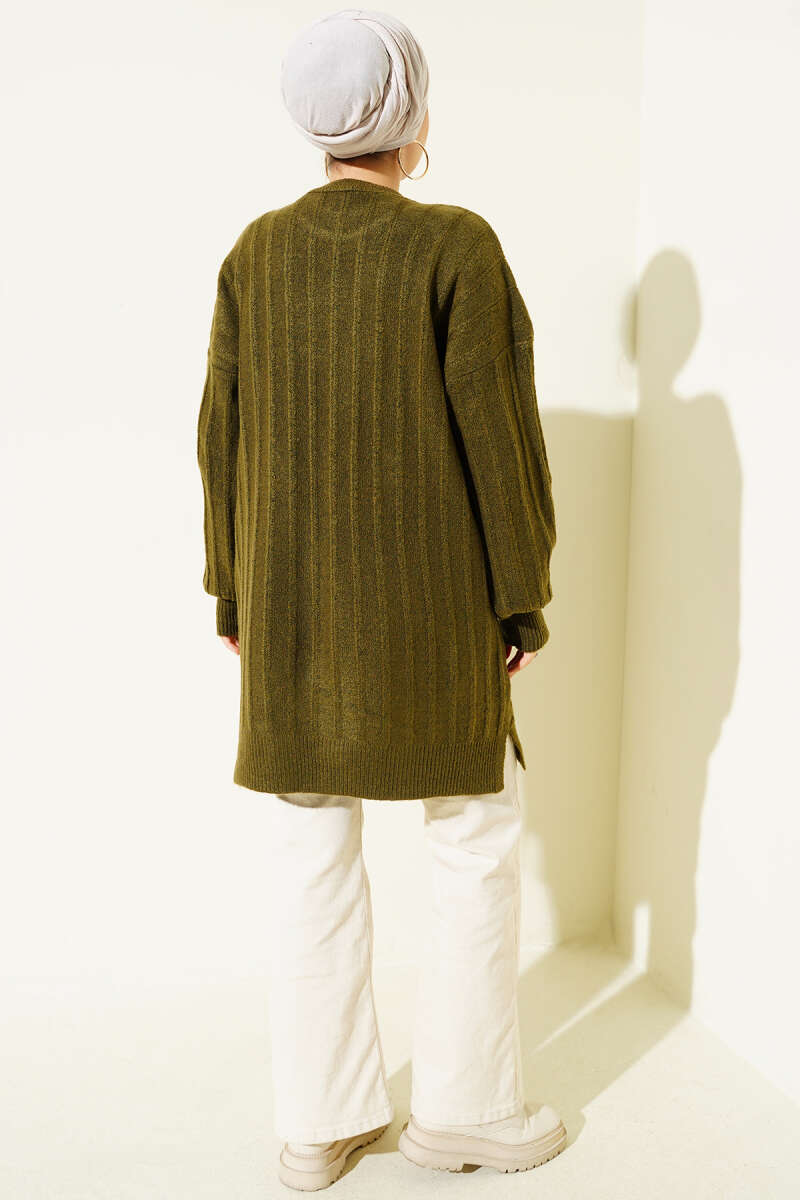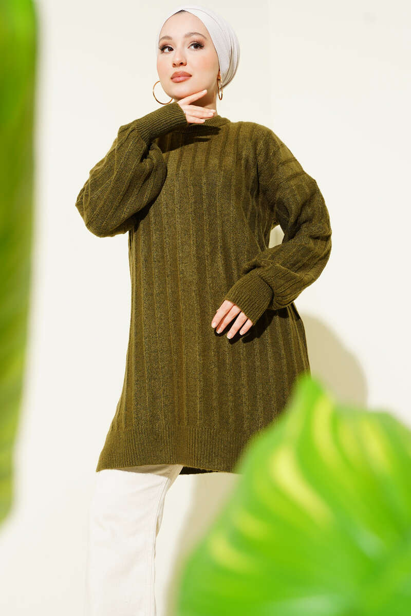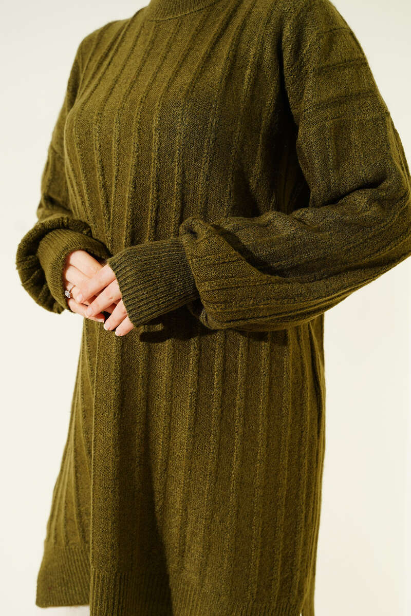 Dik Çizgi Kabartmalı Triko Tunik Zümrüt