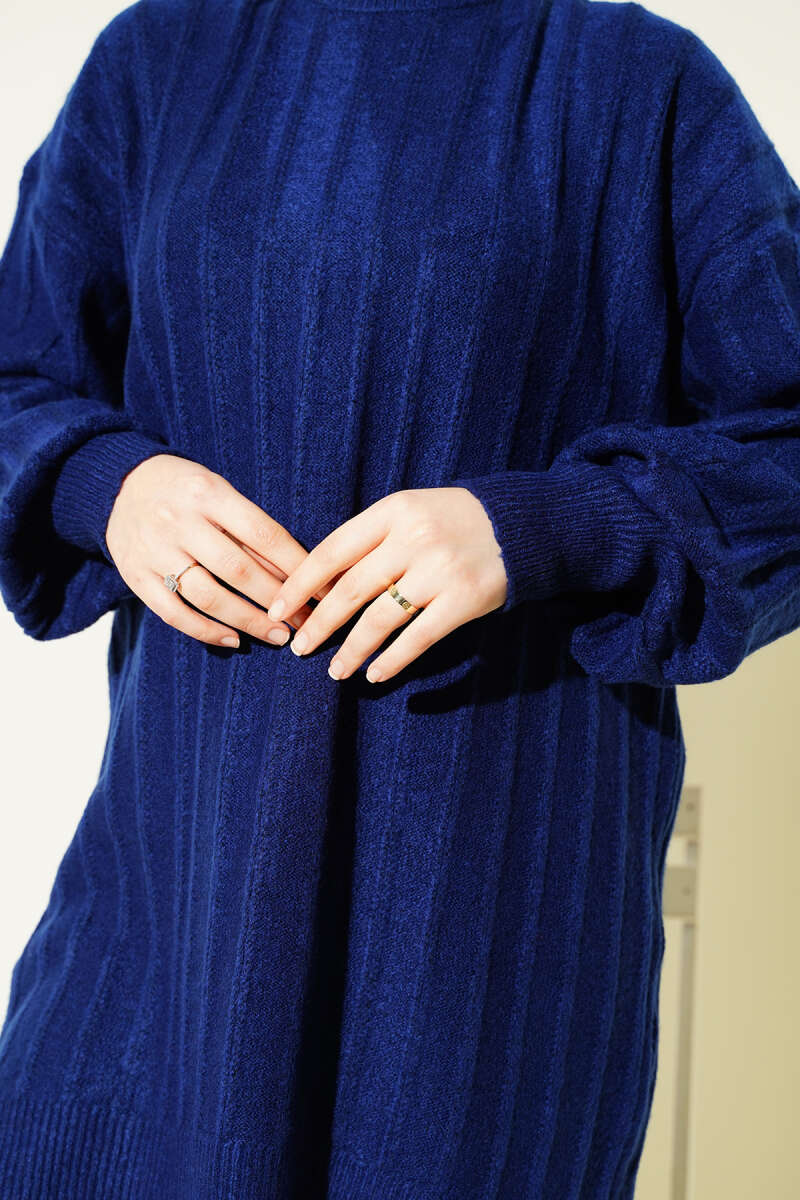 Dik Çizgi Kabartmalı Triko Tunik Taş