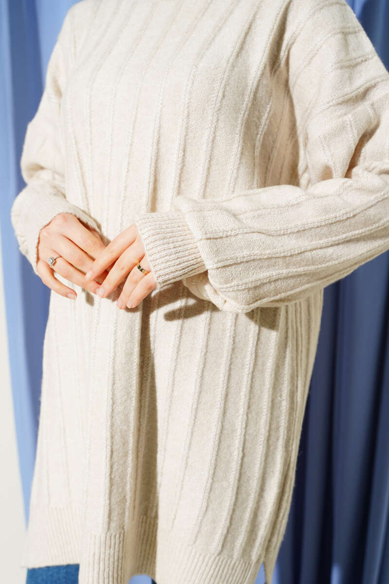 Dik Çizgi Kabartmalı Triko Tunik Bej