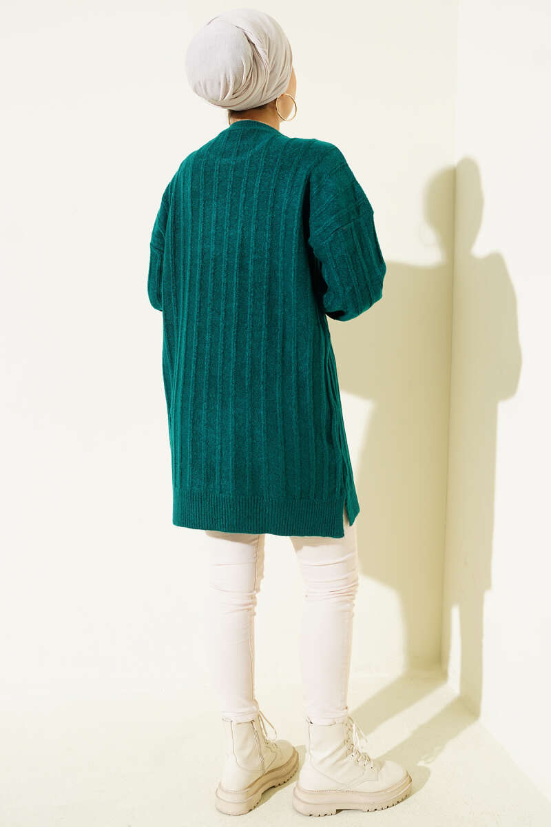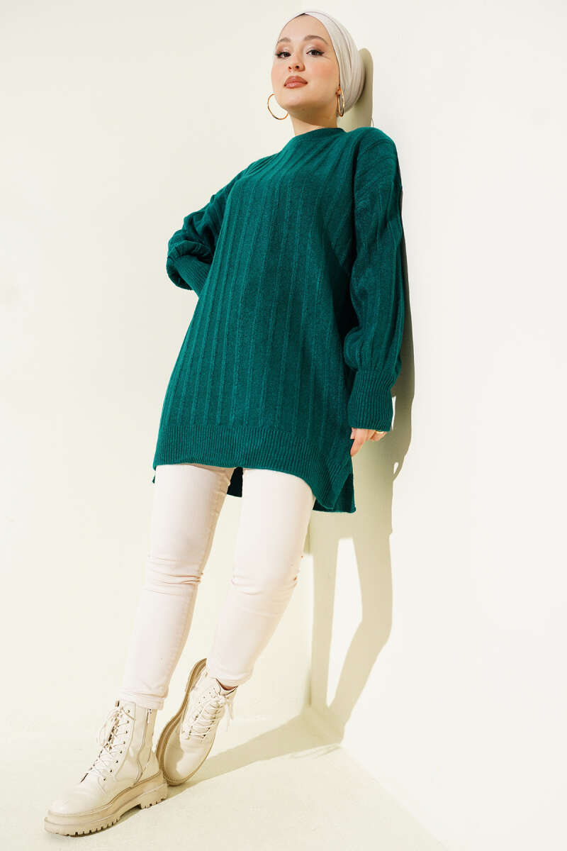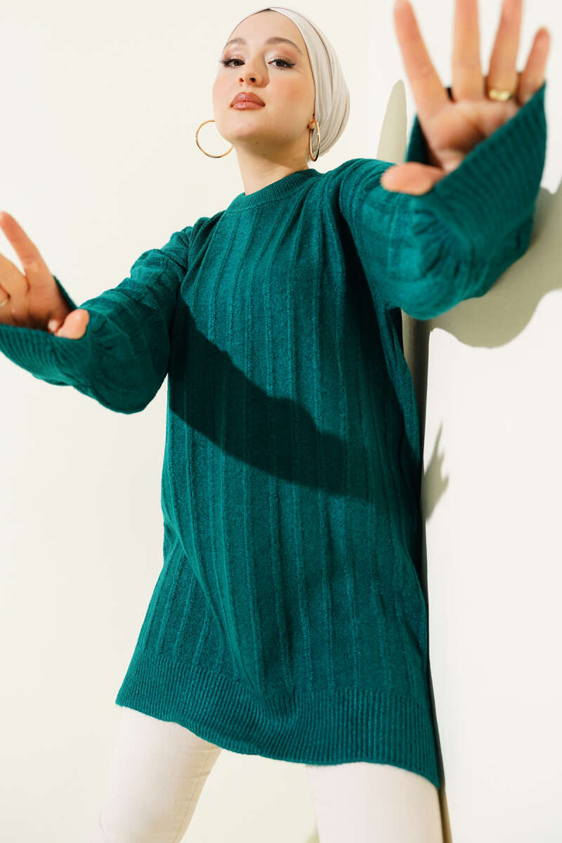 Dik Çizgi Kabartmalı Triko Tunik Haki