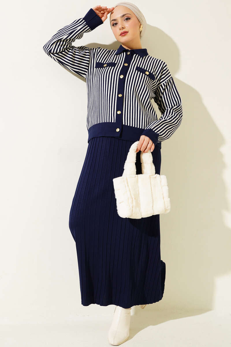 Çoban Dikişli Triko Tunik İkili Takım Nefti