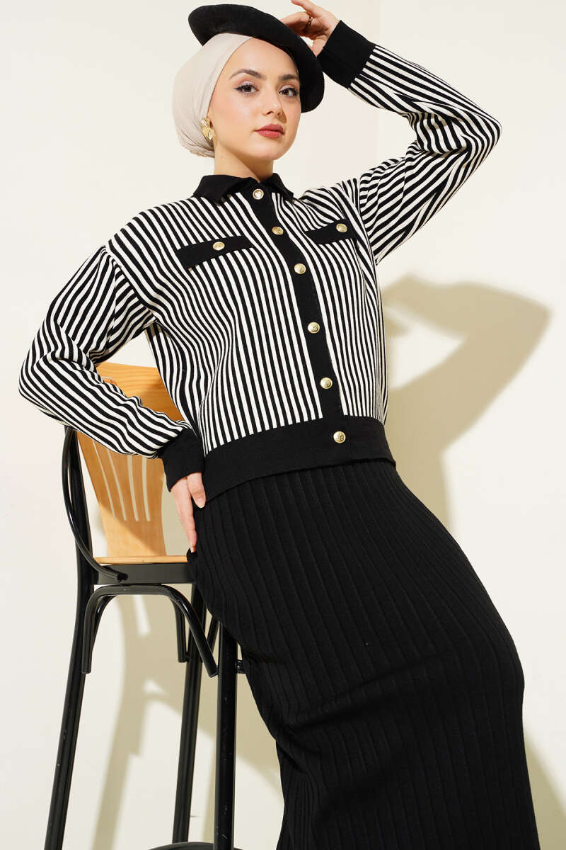 Çapraz Bağlamalı Triko Takım Siyah