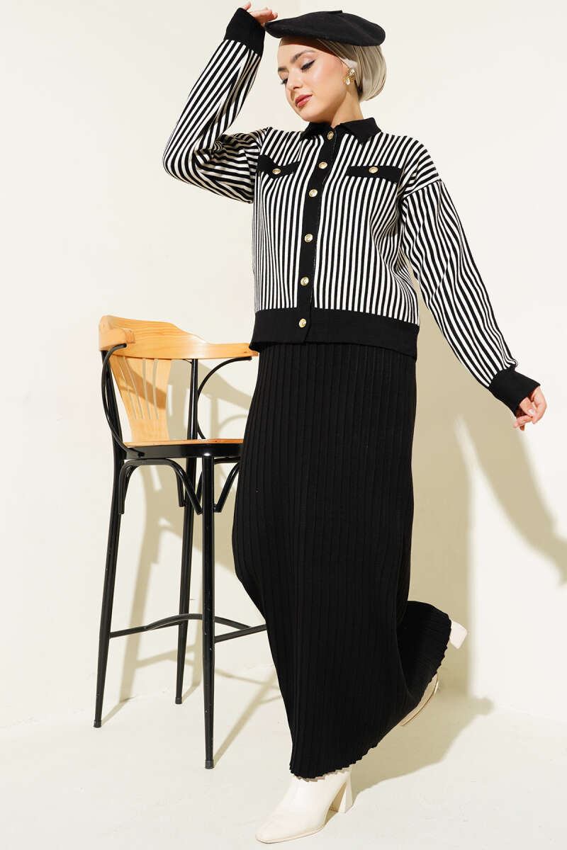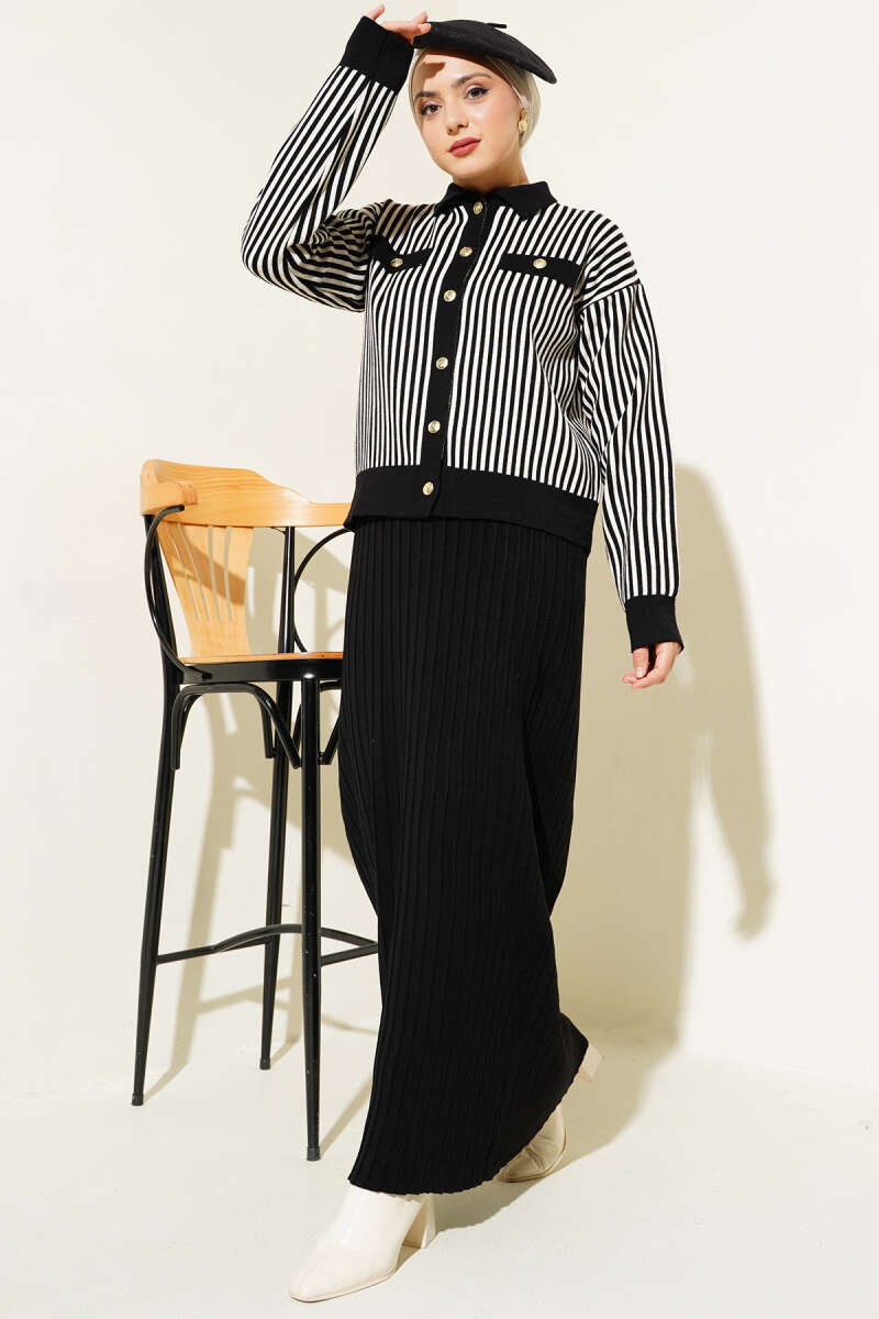 Çiçek Motifli Triko İkili Takım Siyah