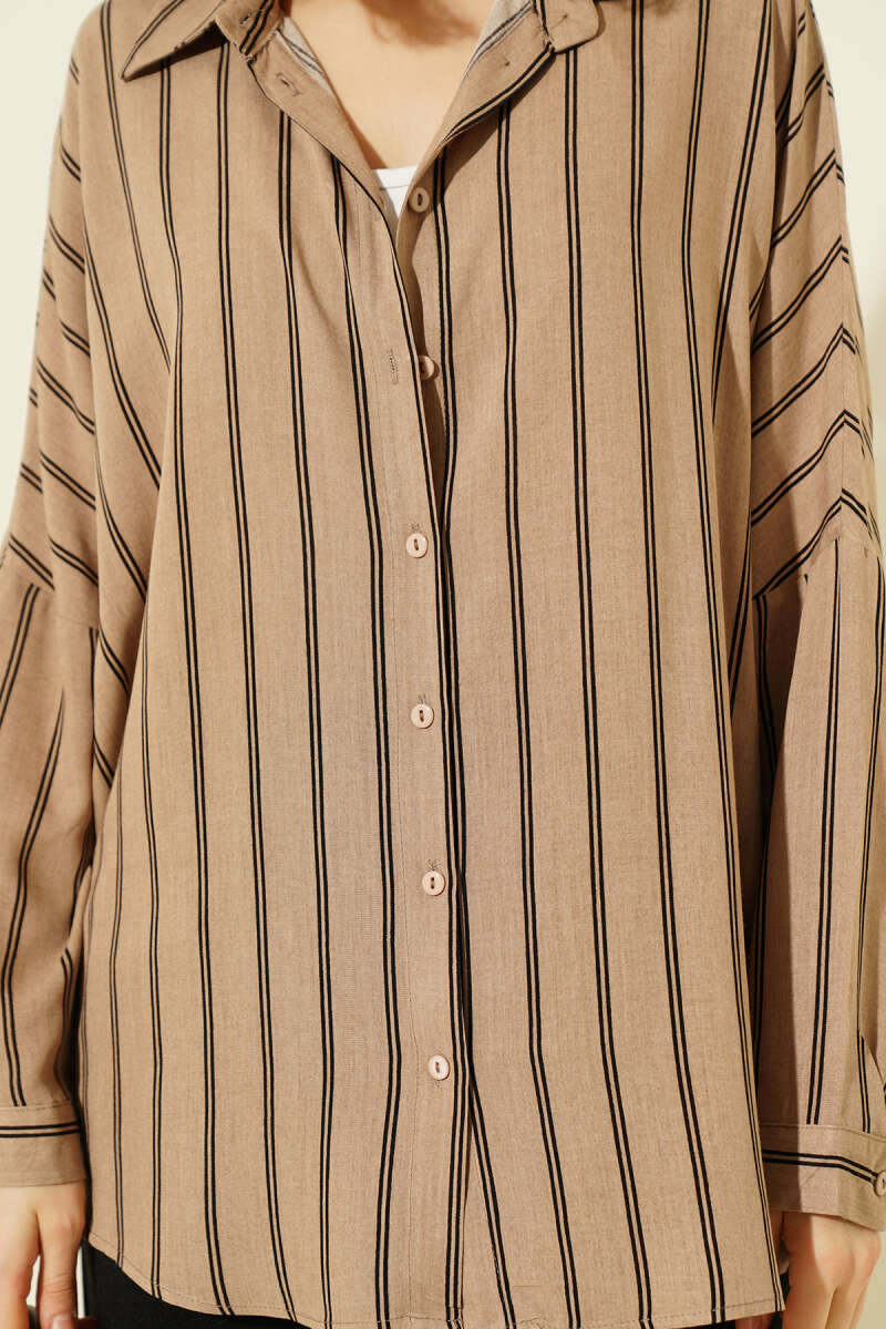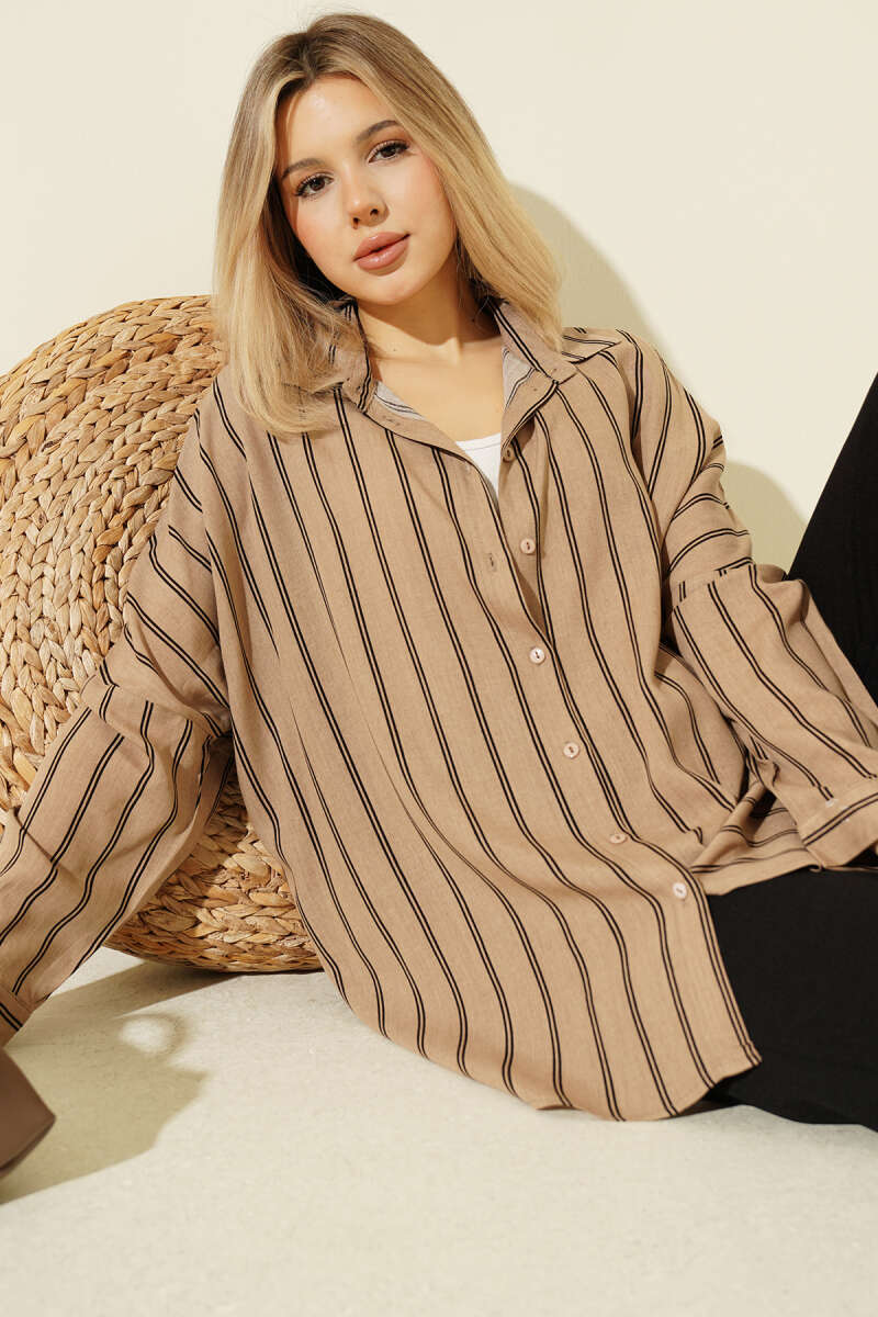 Yanı Kuşak Bağlamalı Kısa Gömlek Latte