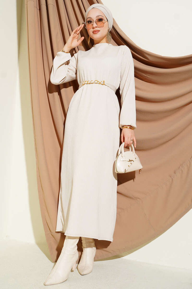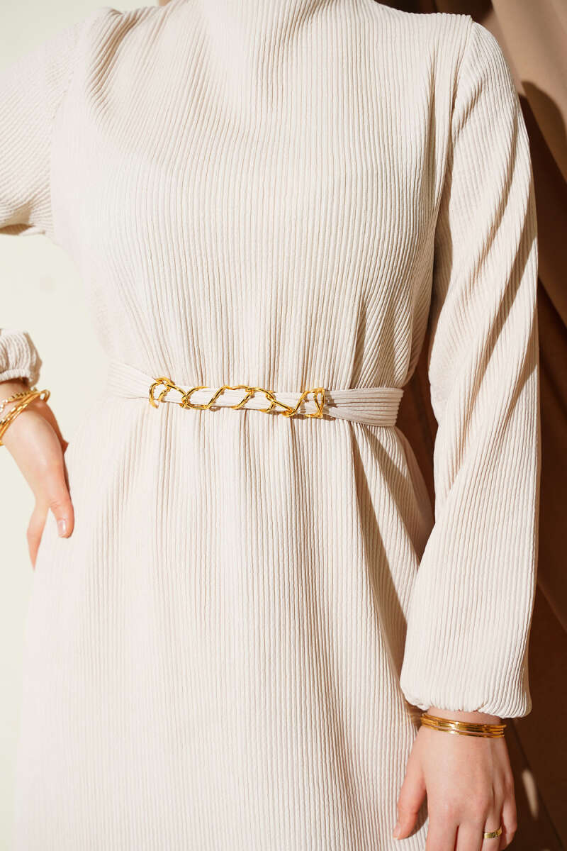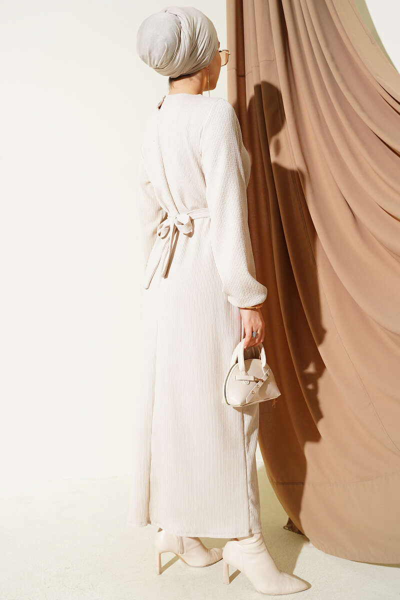 Dik Fitilli Kuşaklı Basic Elbise Kahve