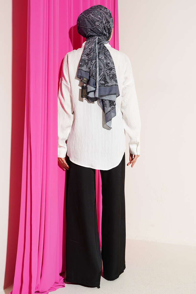 Geniş Kollu Oversize Uzun Gömlek Gri